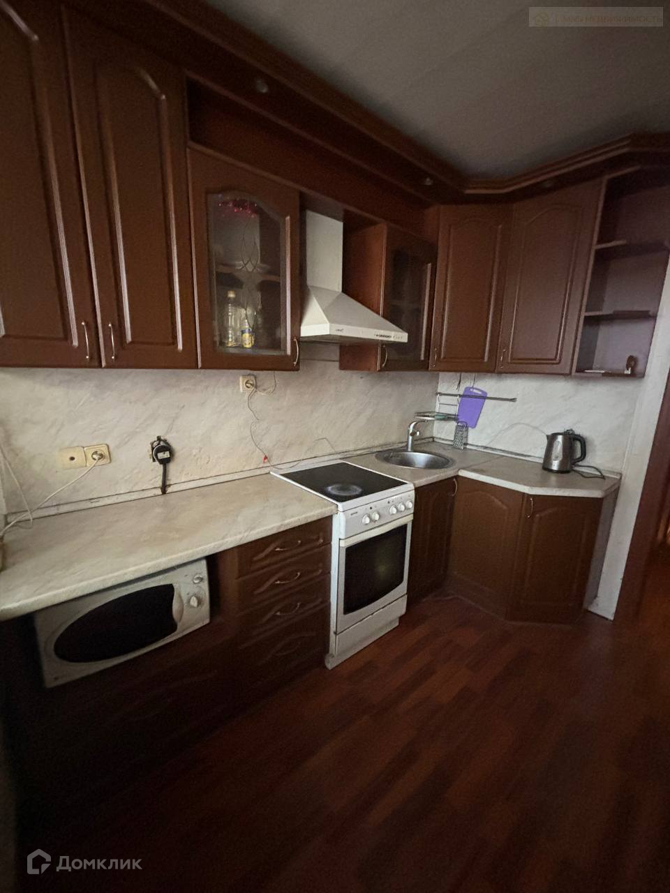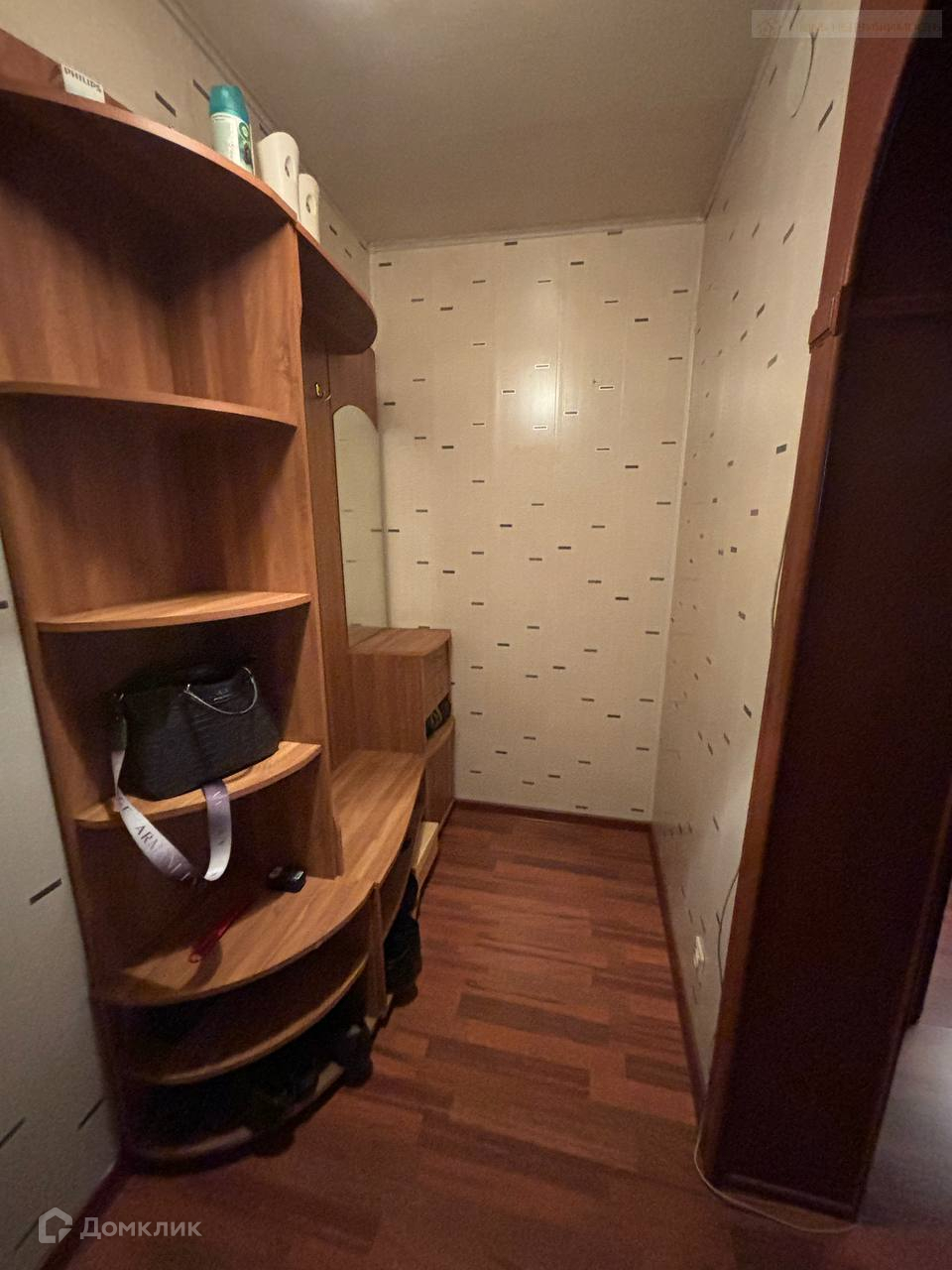 В квартире остаются кухонный гарнитур, встроенный шкаф-купе, мебель в прихожей.