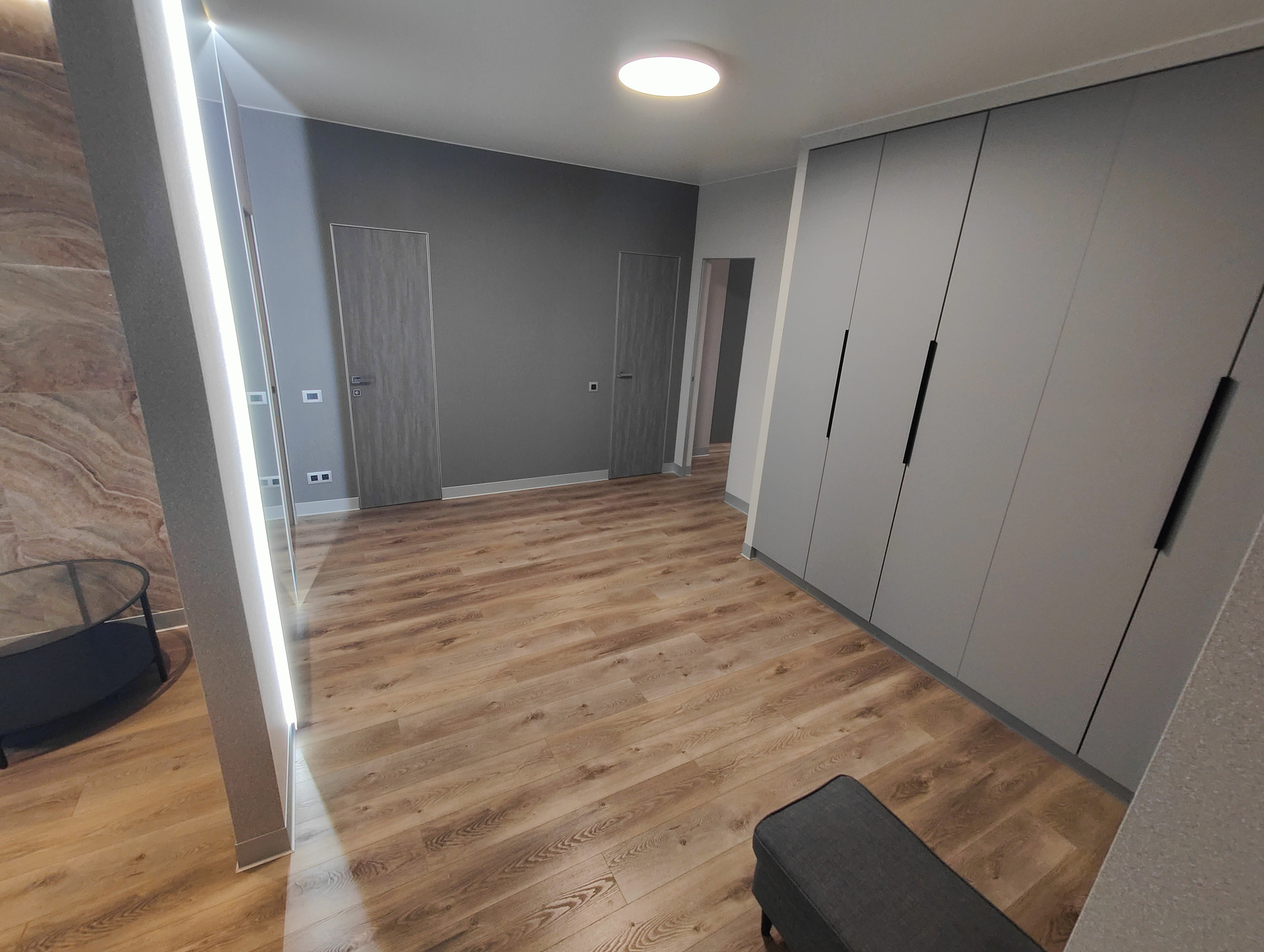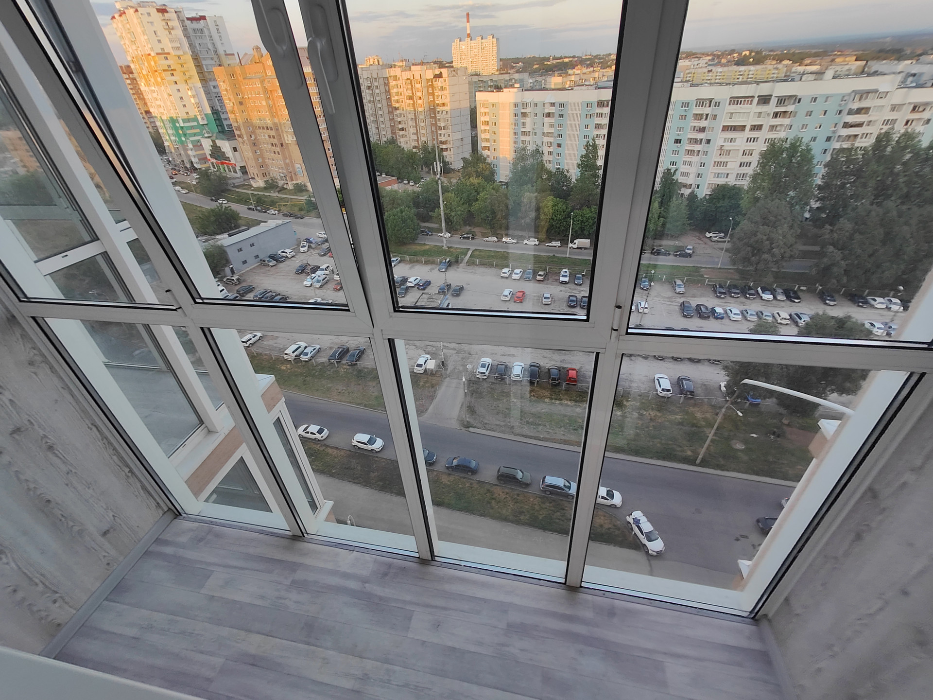 Спальня с потолочной подсветкой и выходом на свой застекленный балкон с видом на город. Гардеробный шкаф большой.