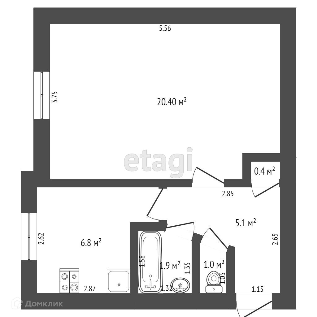 Общая площадь 31.1 м2