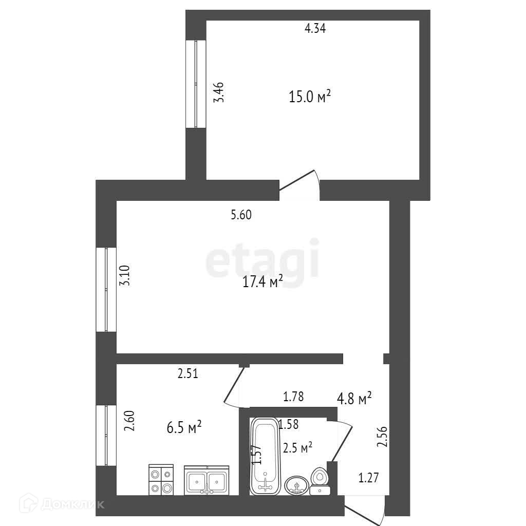 Общая площадь 46.2 м2
