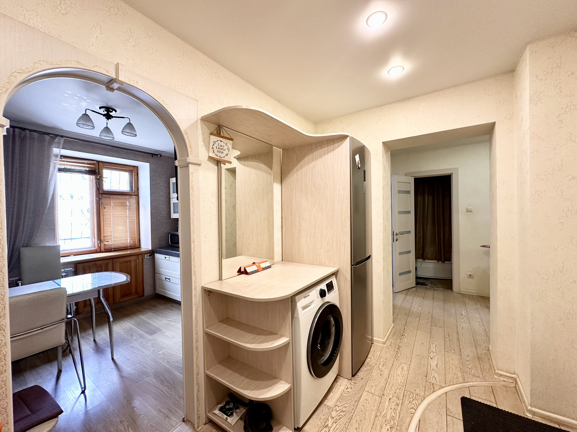 Собственник оставляет в квартире многие предметы мебели и техники (почти все). Ремонт был выполнен из качественных дорогих материалов. Техника не старше 3-5 лет. Заезжай и живи.