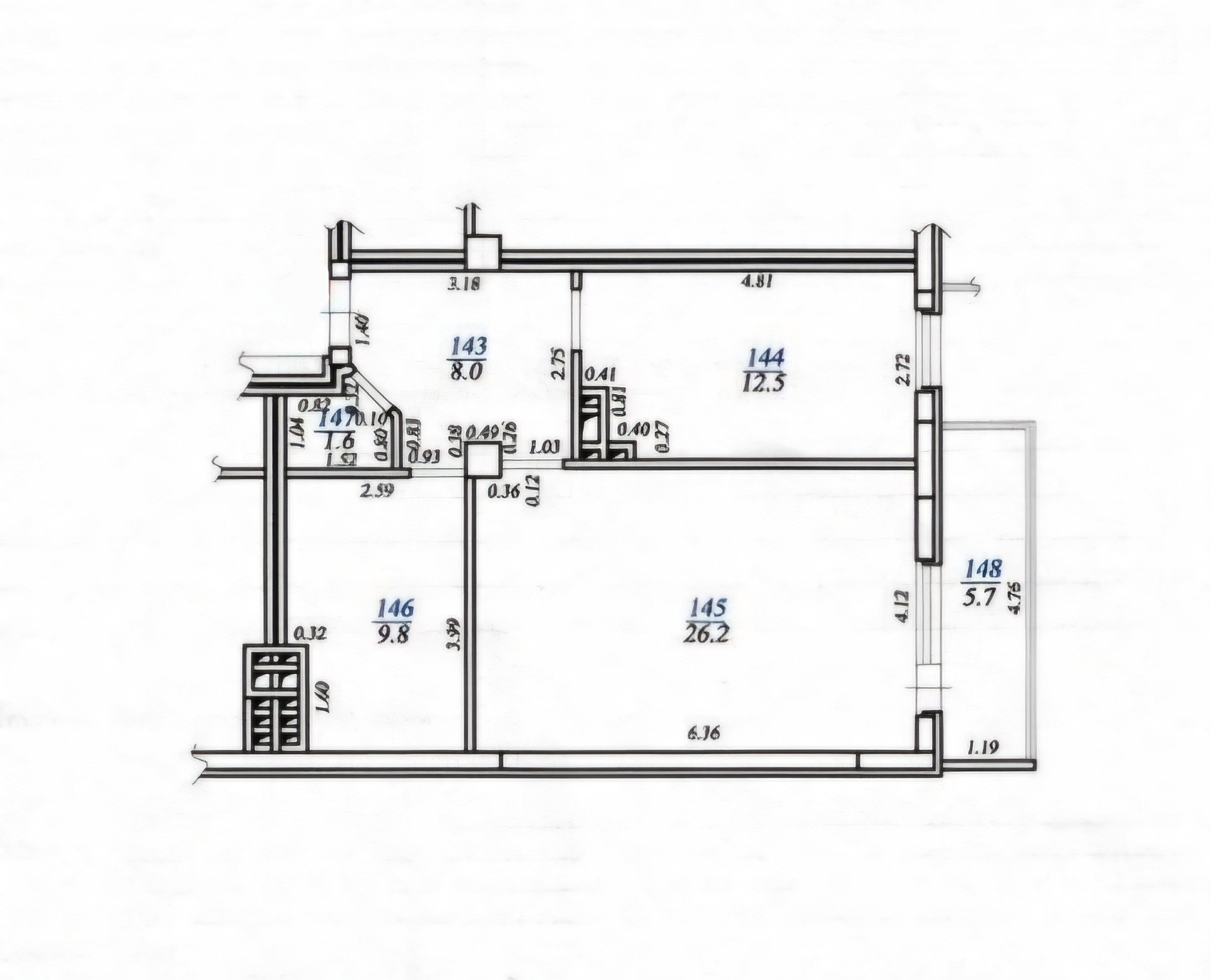 Жилая площадь 26.2 м2