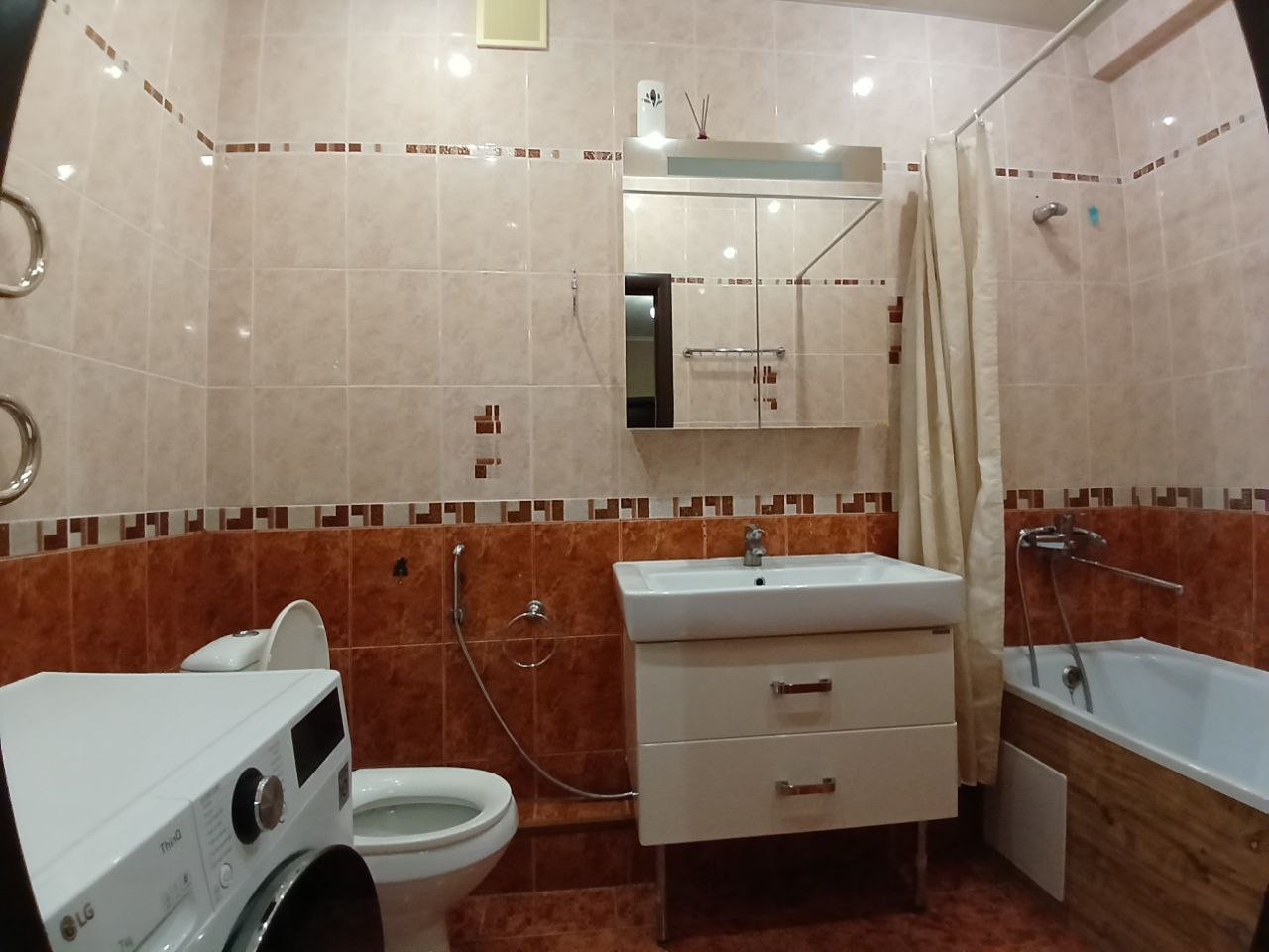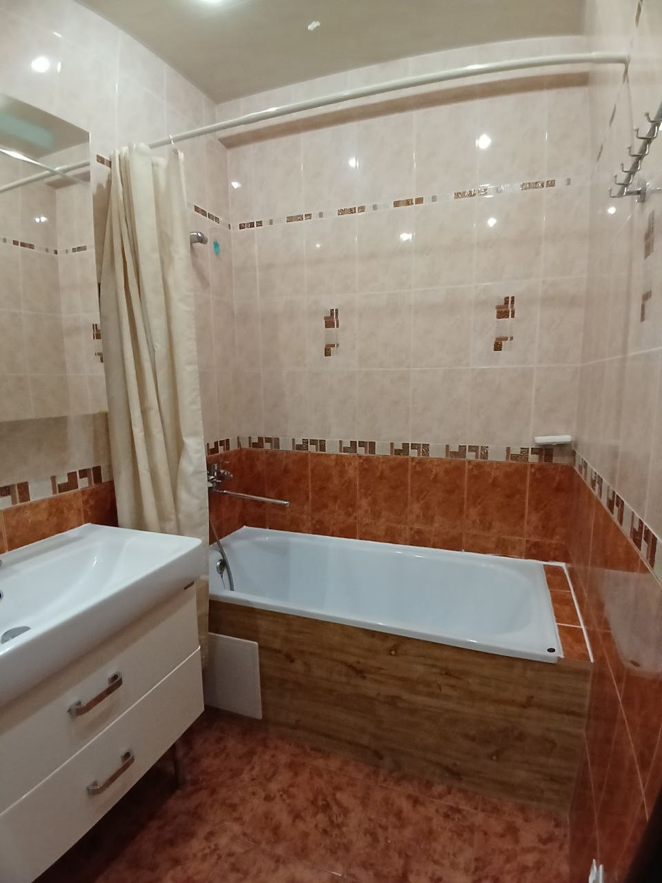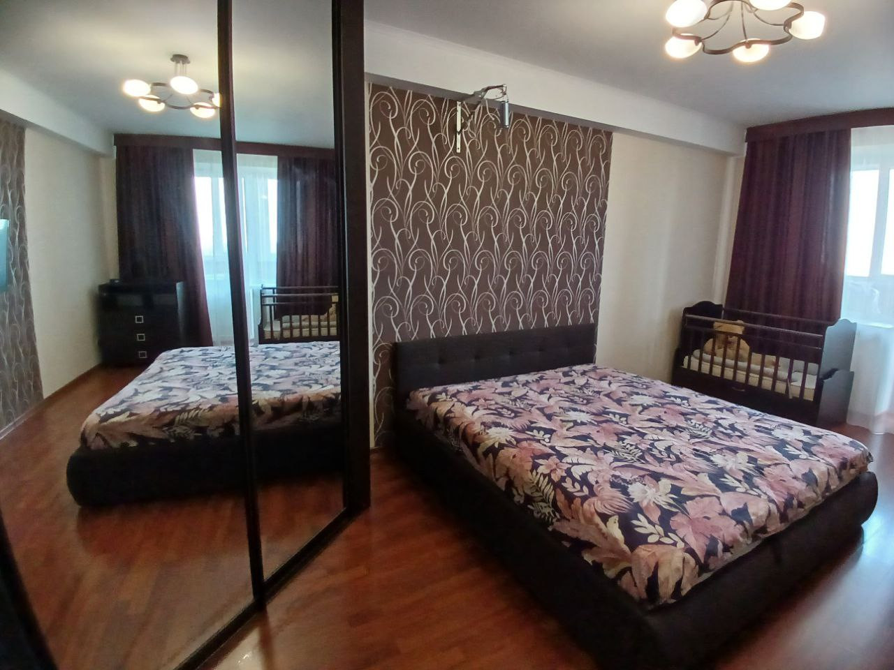 В спальнях на полу ламинат, в остальных комнатах везде плитка.