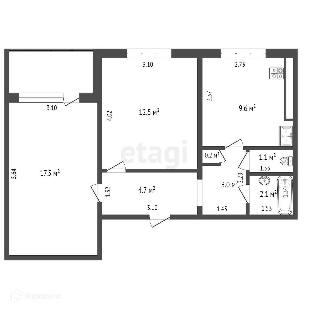 Огромным преимуществом квартиры является большая просторная кухня, позволяющая реализовать пространство так, как вам будет комфортно и удобно.