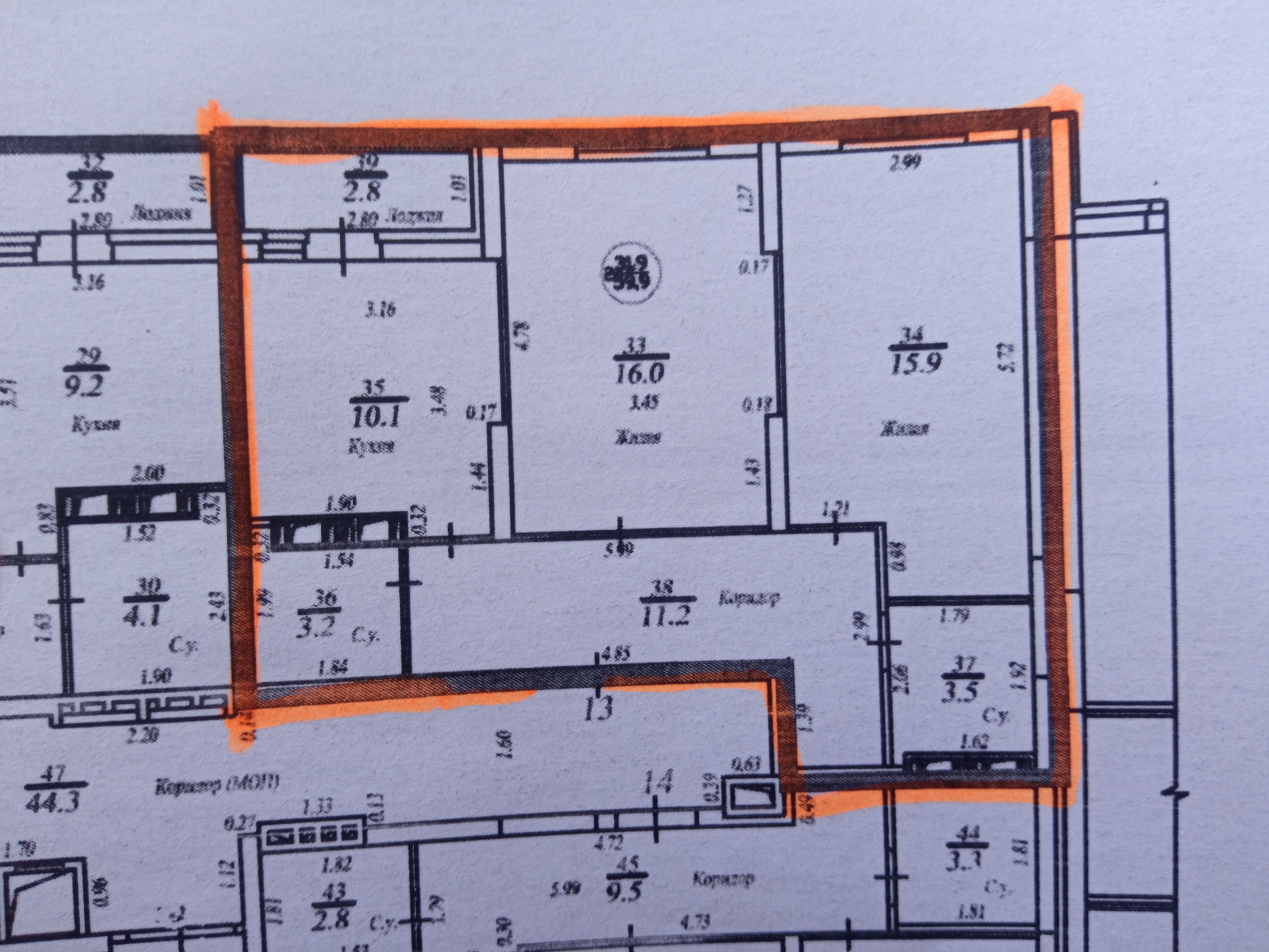 Жилая площадь 31.9 м2