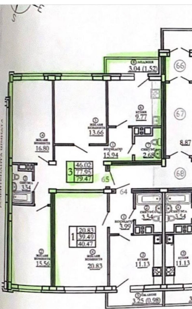 Общая площадь 78.3 м2
