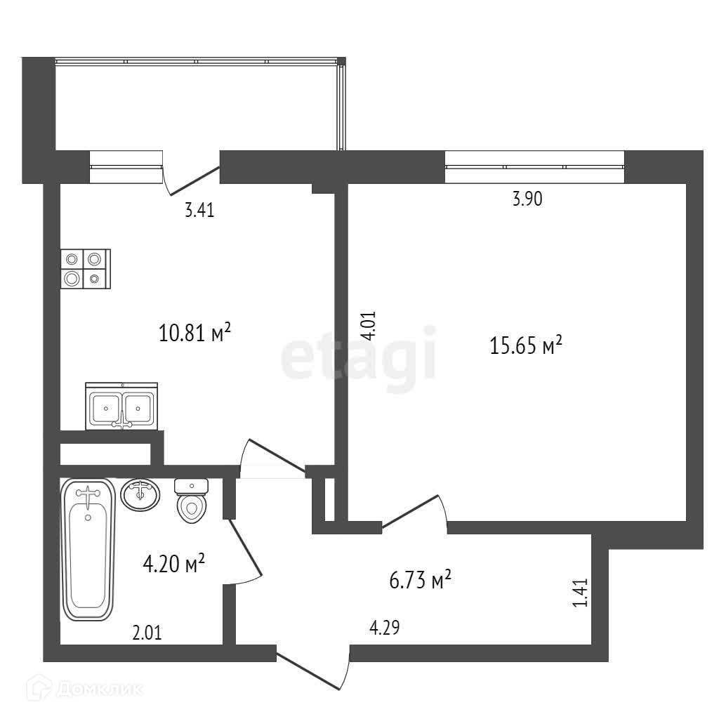 Балкон, лоджия 1 балкон