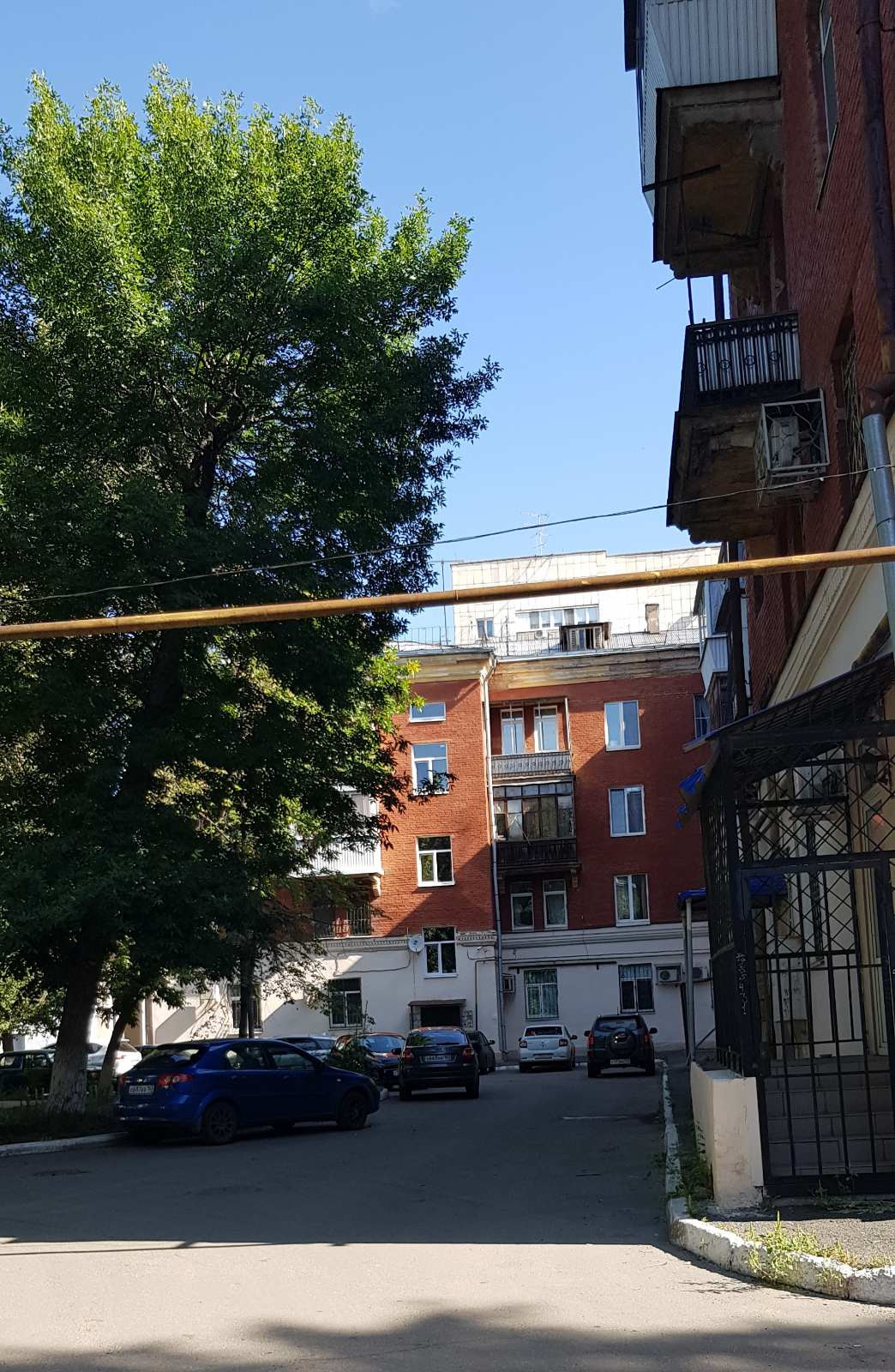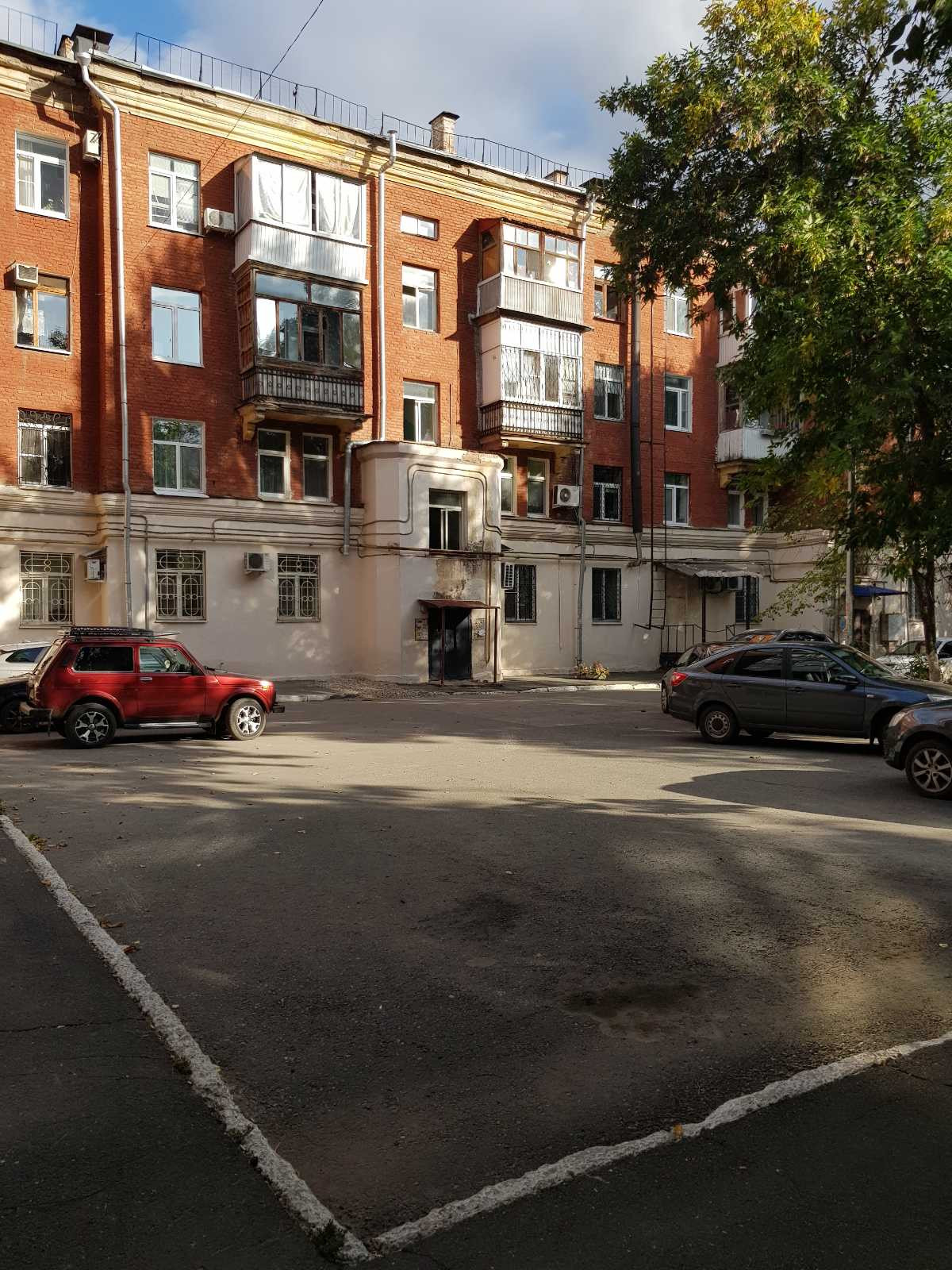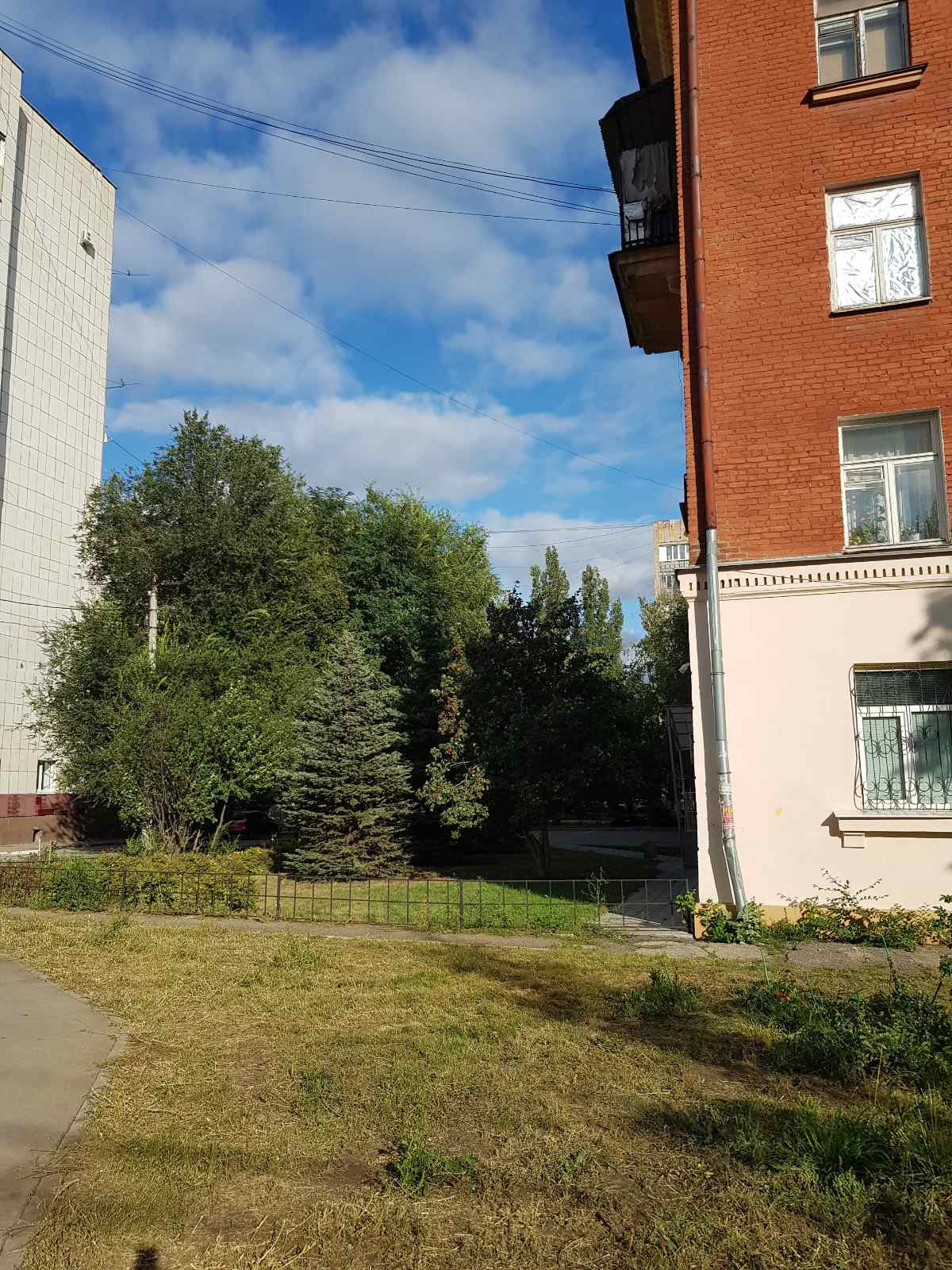 Перекрытия железобетонные, потолки 3.05 м. Дом стоит во дворе, окна во двор, дорога в отдалении.