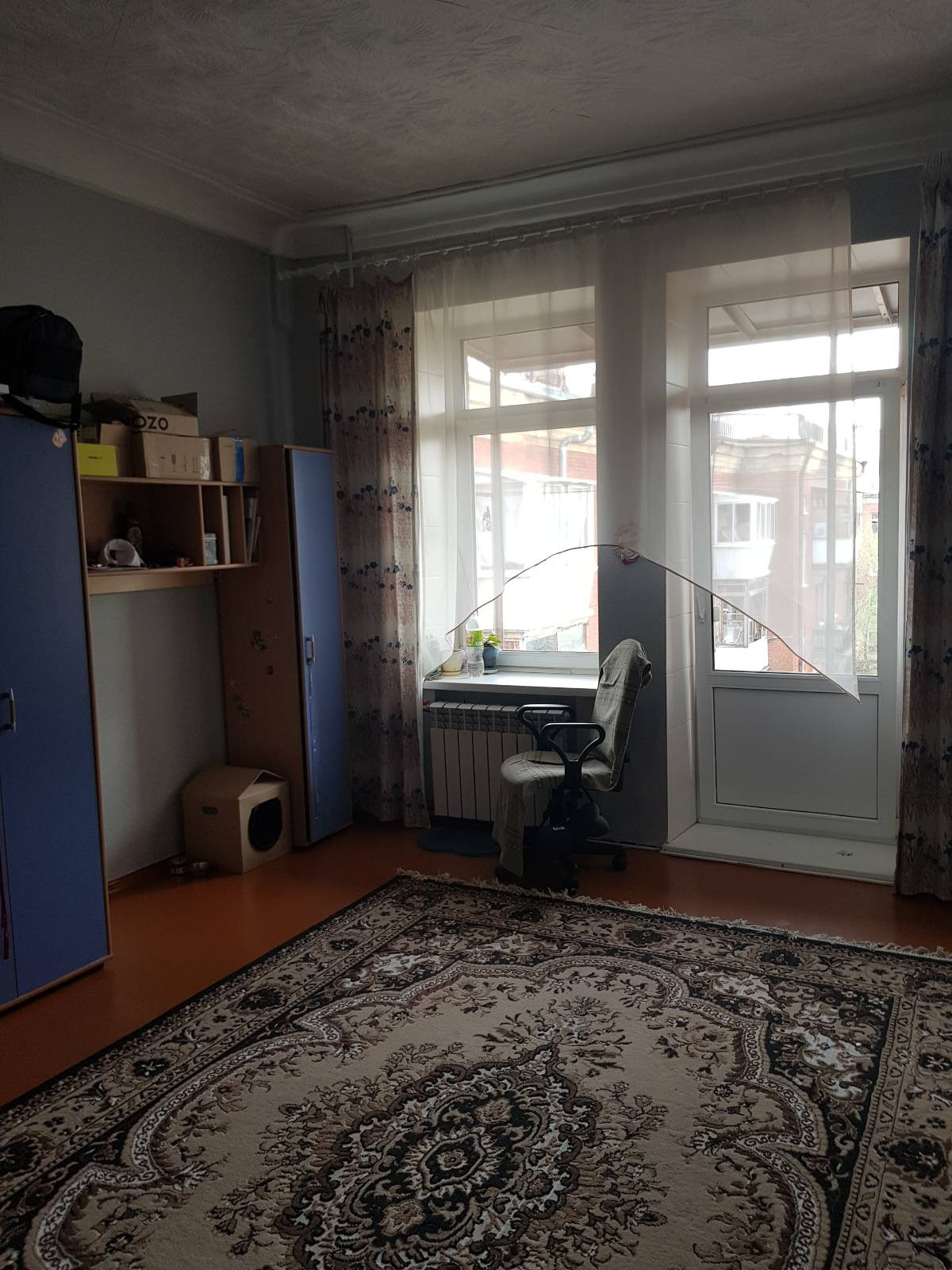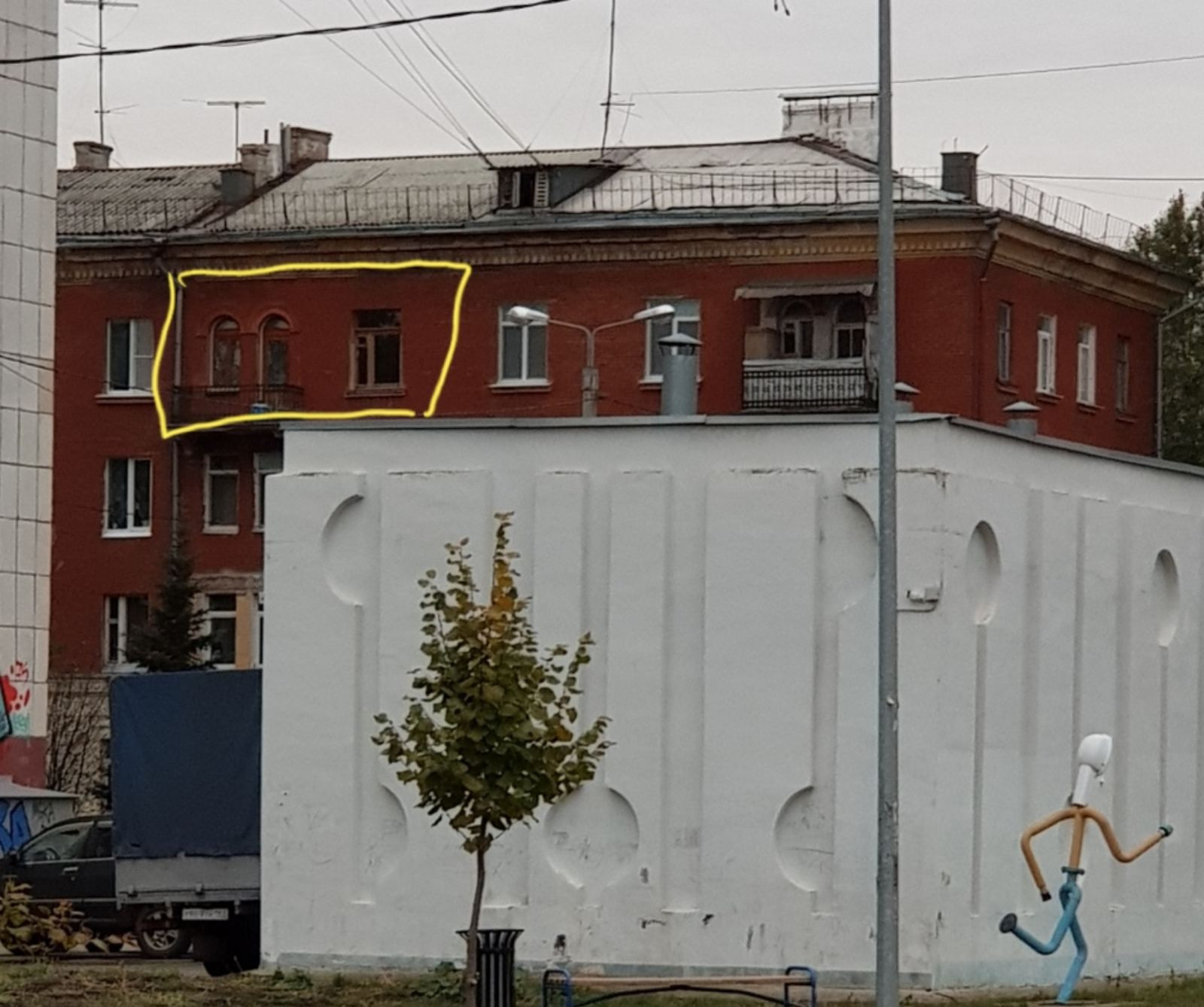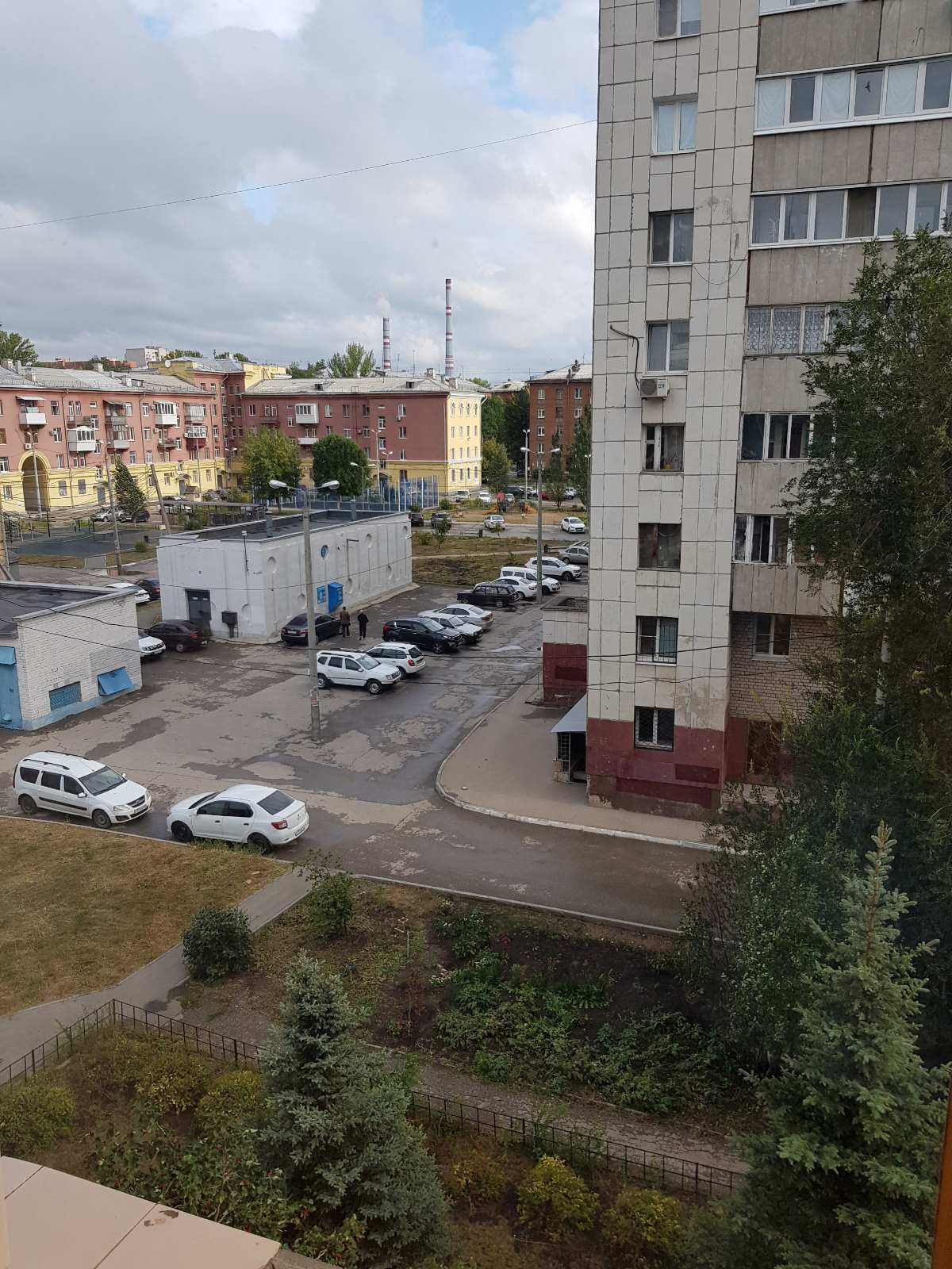 Перекрытия железобетонные, потолки 3.05 м. Дом стоит во дворе, окна во двор, дорога в отдалении.