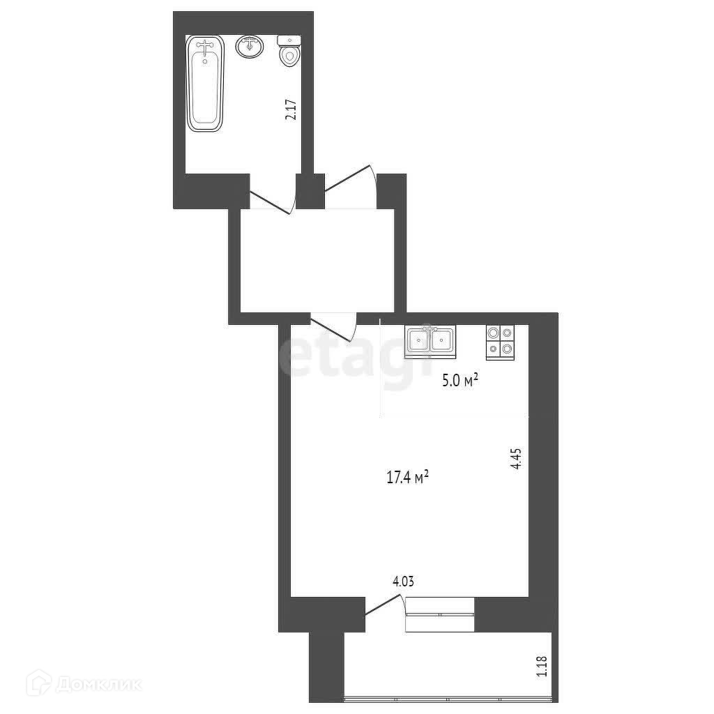 Квартира-студия имеет удобную планировку, которая позволяет эффективно использовать пространство. В ней есть кухня-гостиная, где можно проводить время с друзьями и семьёй, а также спальня и ванная комната.