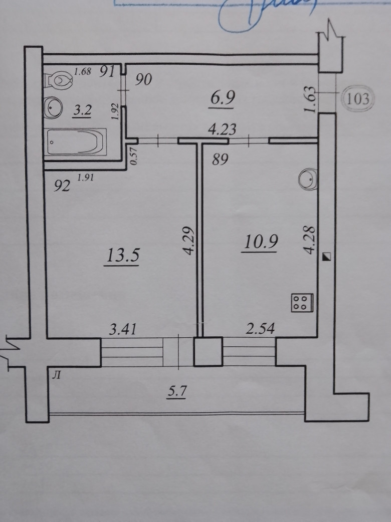 Балкон, лоджия 1 балкон