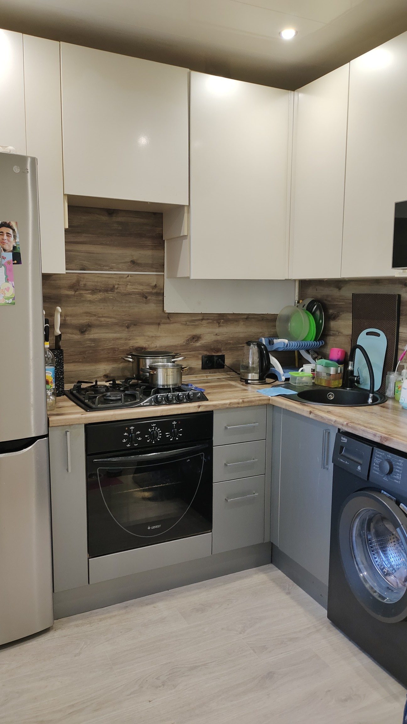 При продаже остаётся кухонный гарнитур, шкаф для одежды.