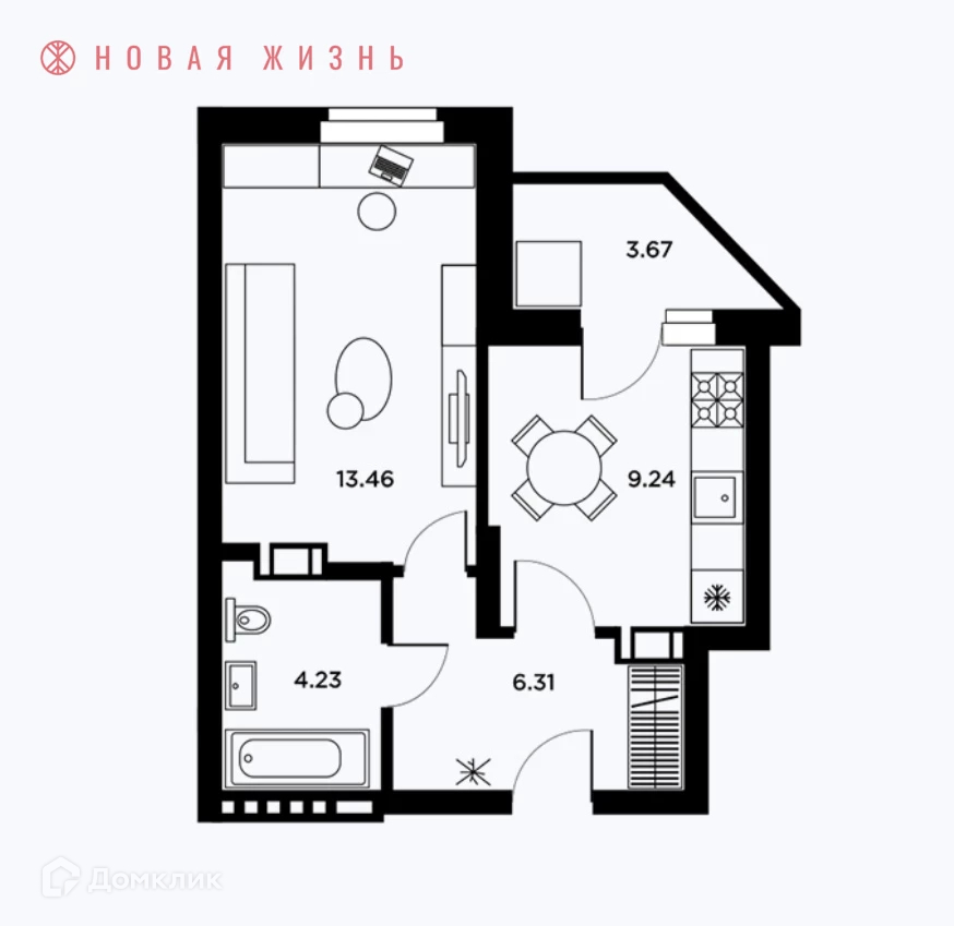 Жилая площадь 13.5 м2