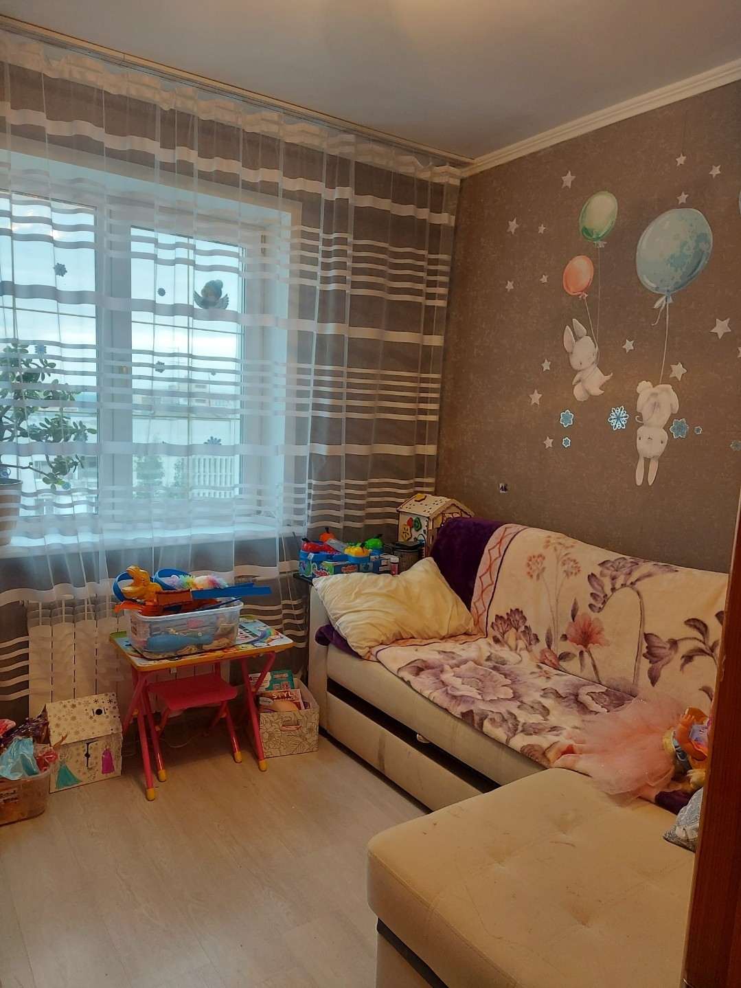 Общий балкон так же в нашем распоряжении, постелили там линолеум, сделали сетку, дополнительная площадь.