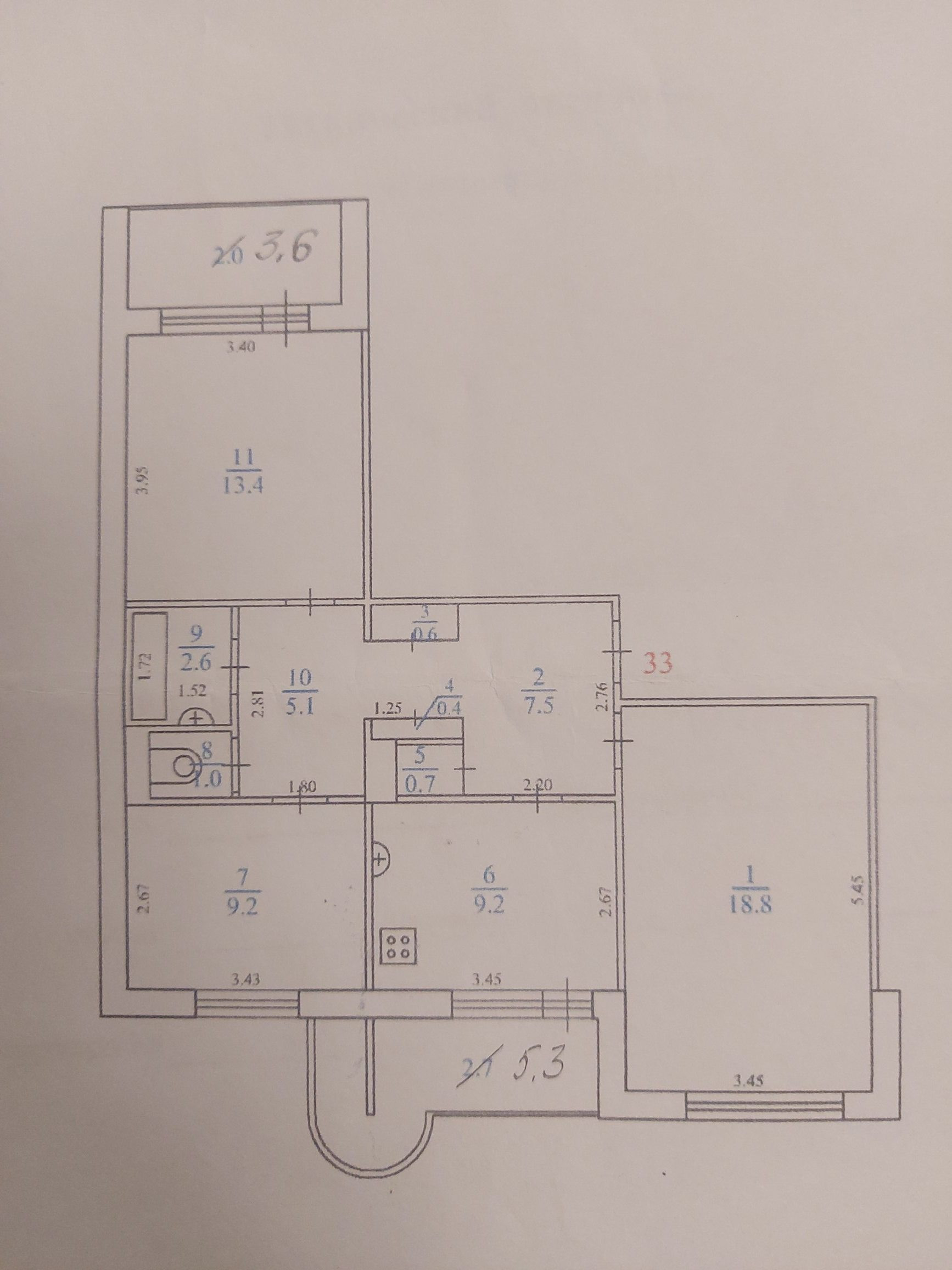 Жилая площадь 41.4 м2
