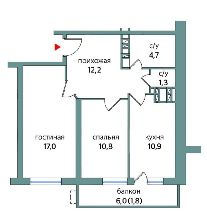 Общая площадь 58.6 м2