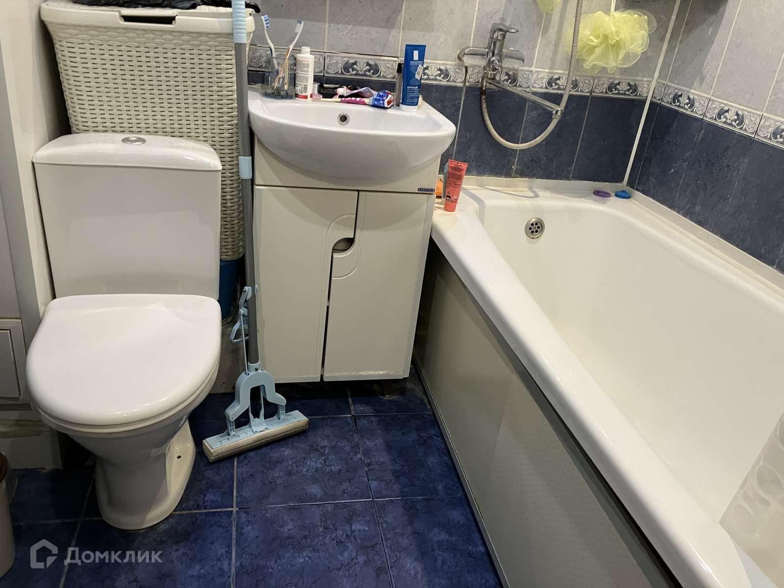 в санузле плитка на полу и стенах.