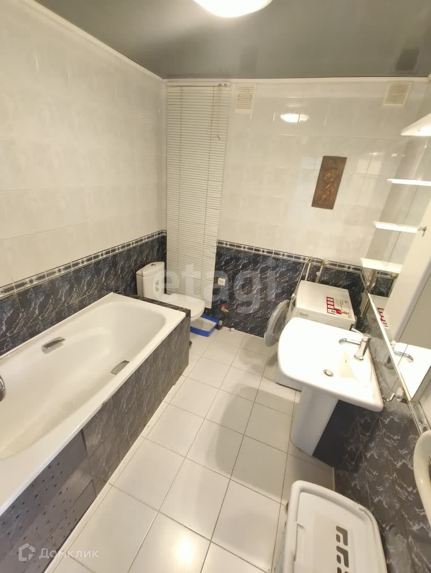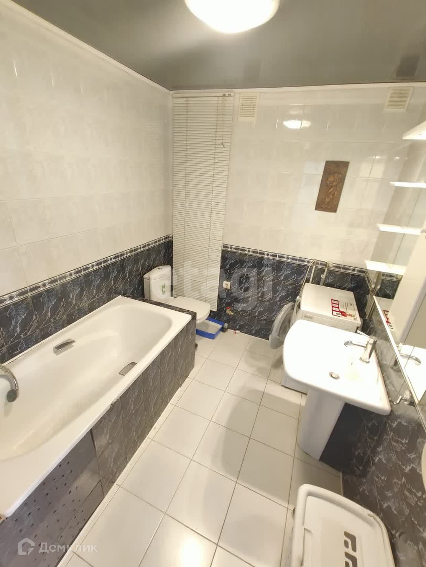 - В ванной — современная сантехника, душевая кабина и стиральная машина.