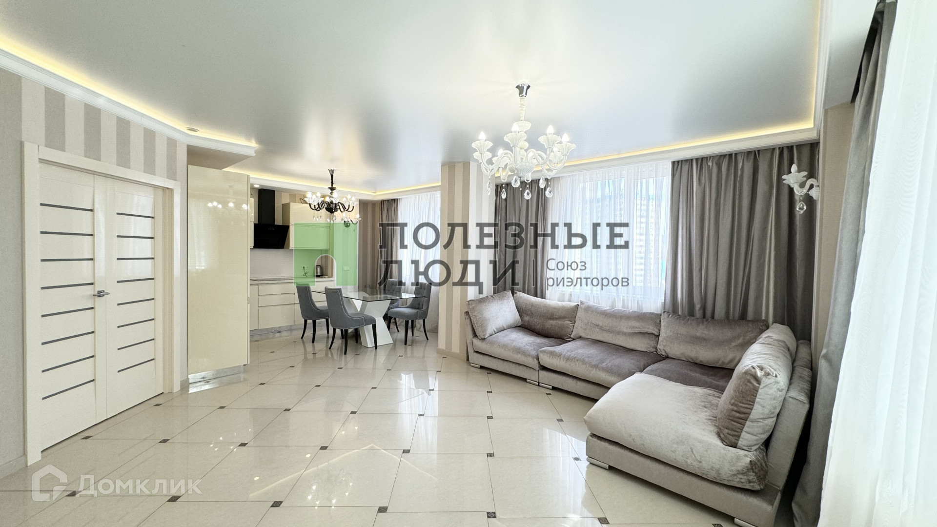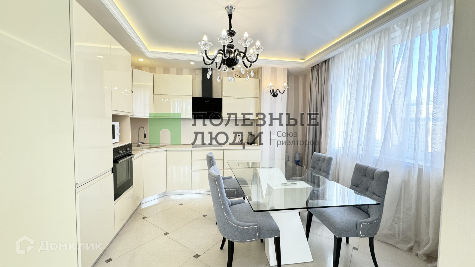 Шикарная кухня- гостиная со встроенным гарнитуром и со всей мебелью.