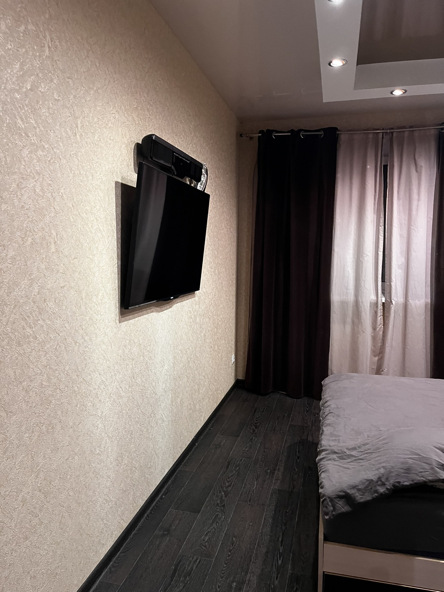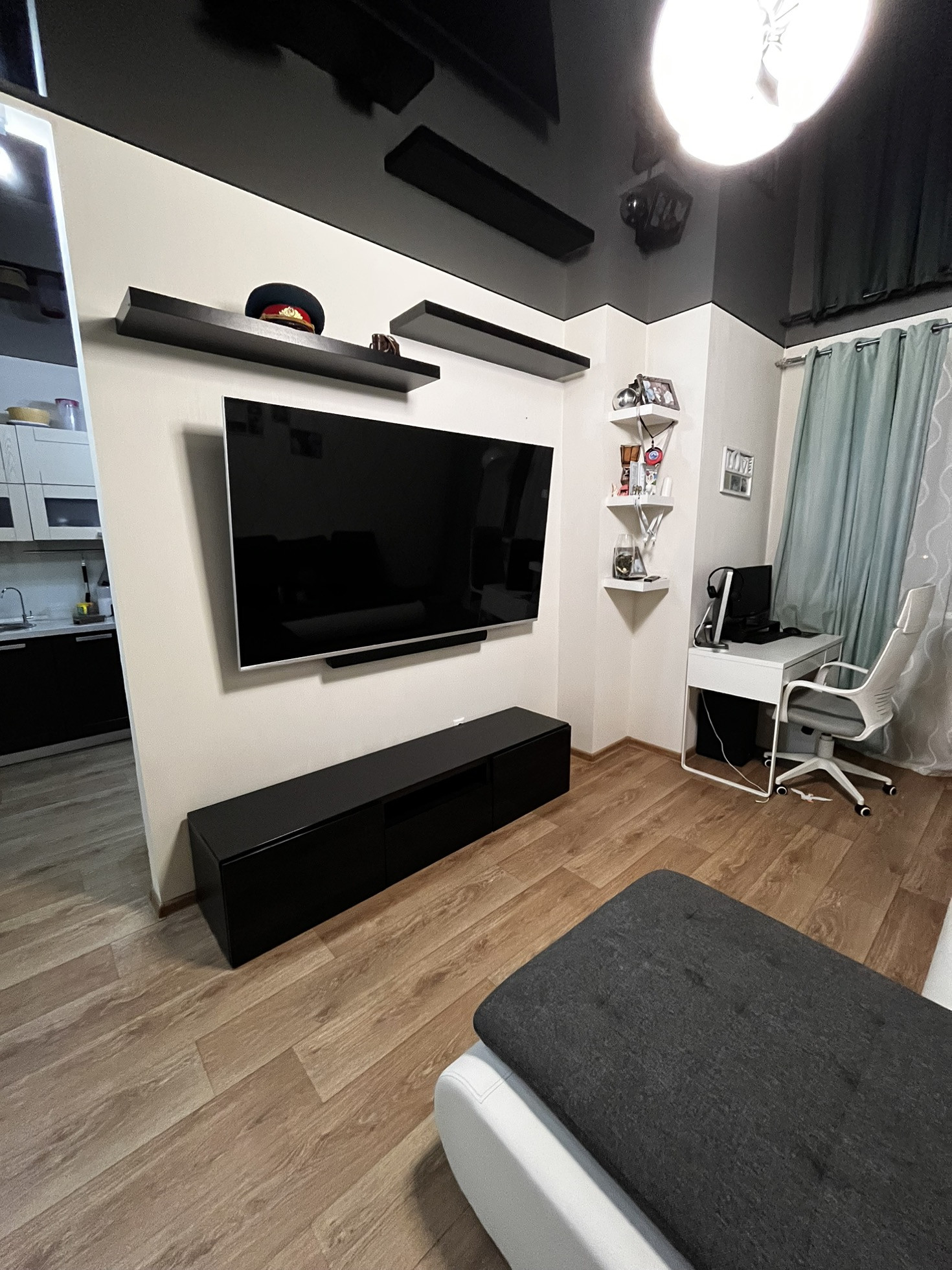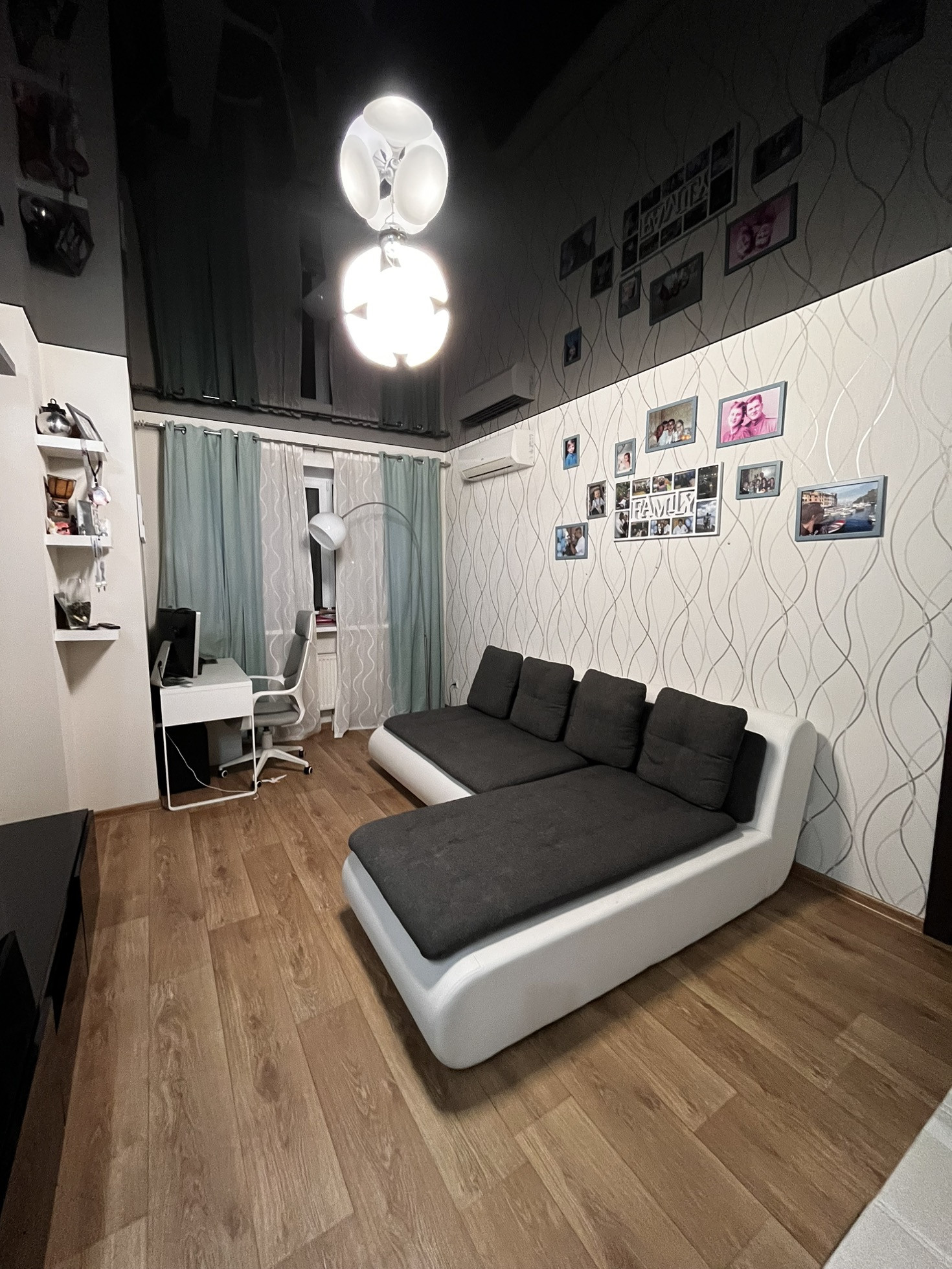 В зале установлен кондиционер, которых охлаждает всю квартиру.
