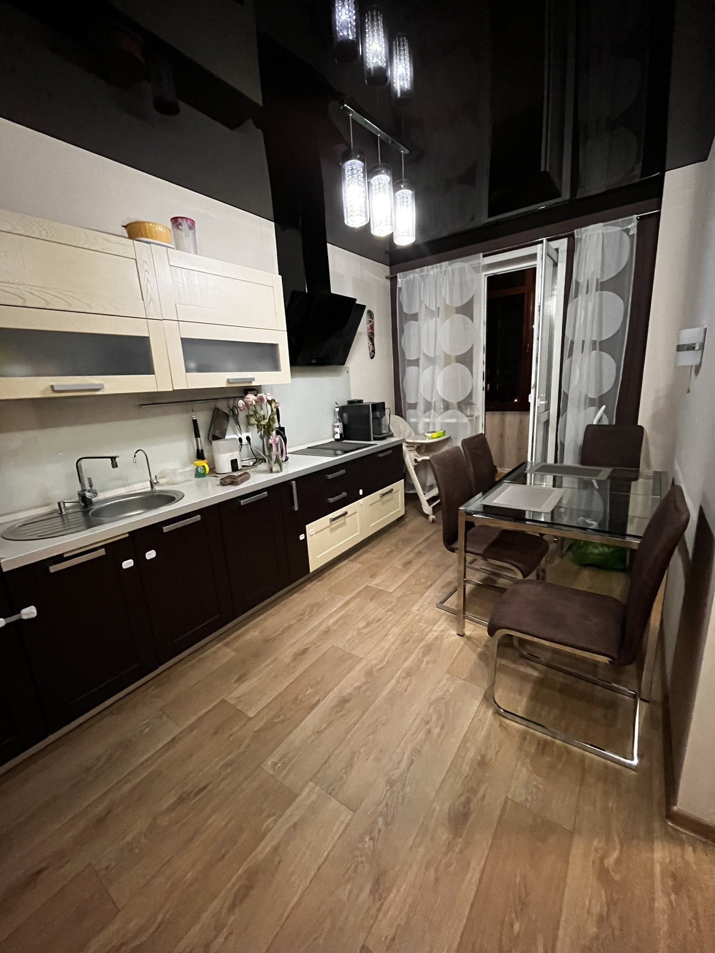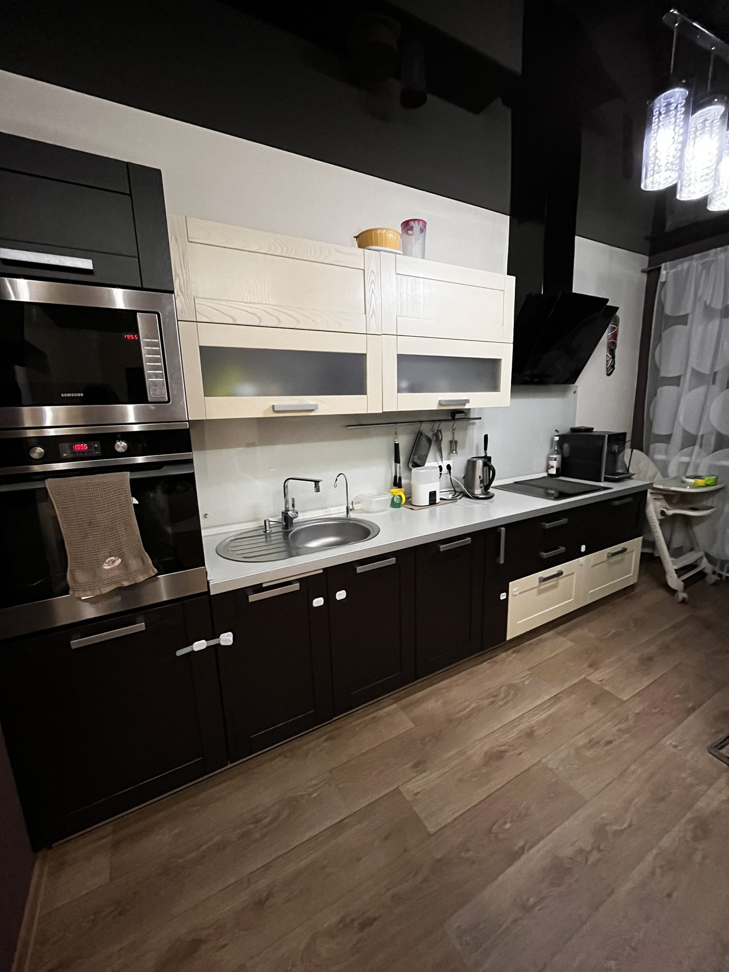 В кухне встроенная бытовая техника genenje. Так же имеется посудомоечная машина и кофемашина.