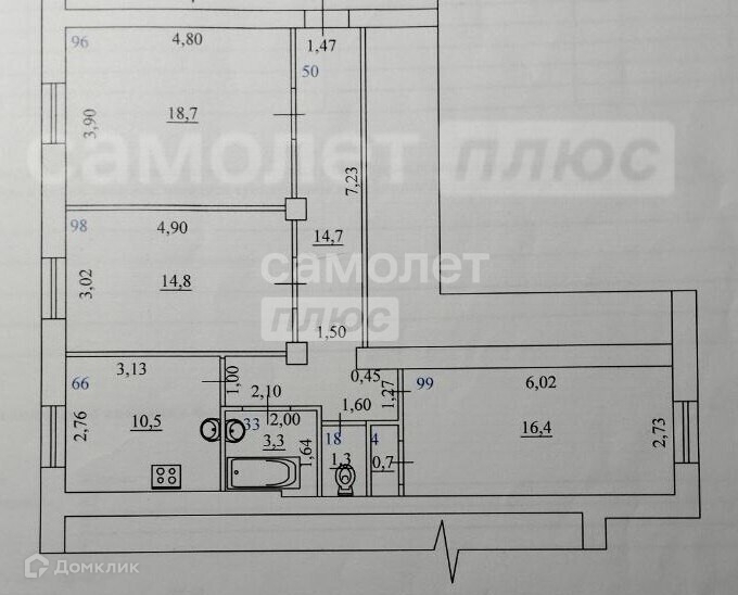 Общая площадь 80.4 м2