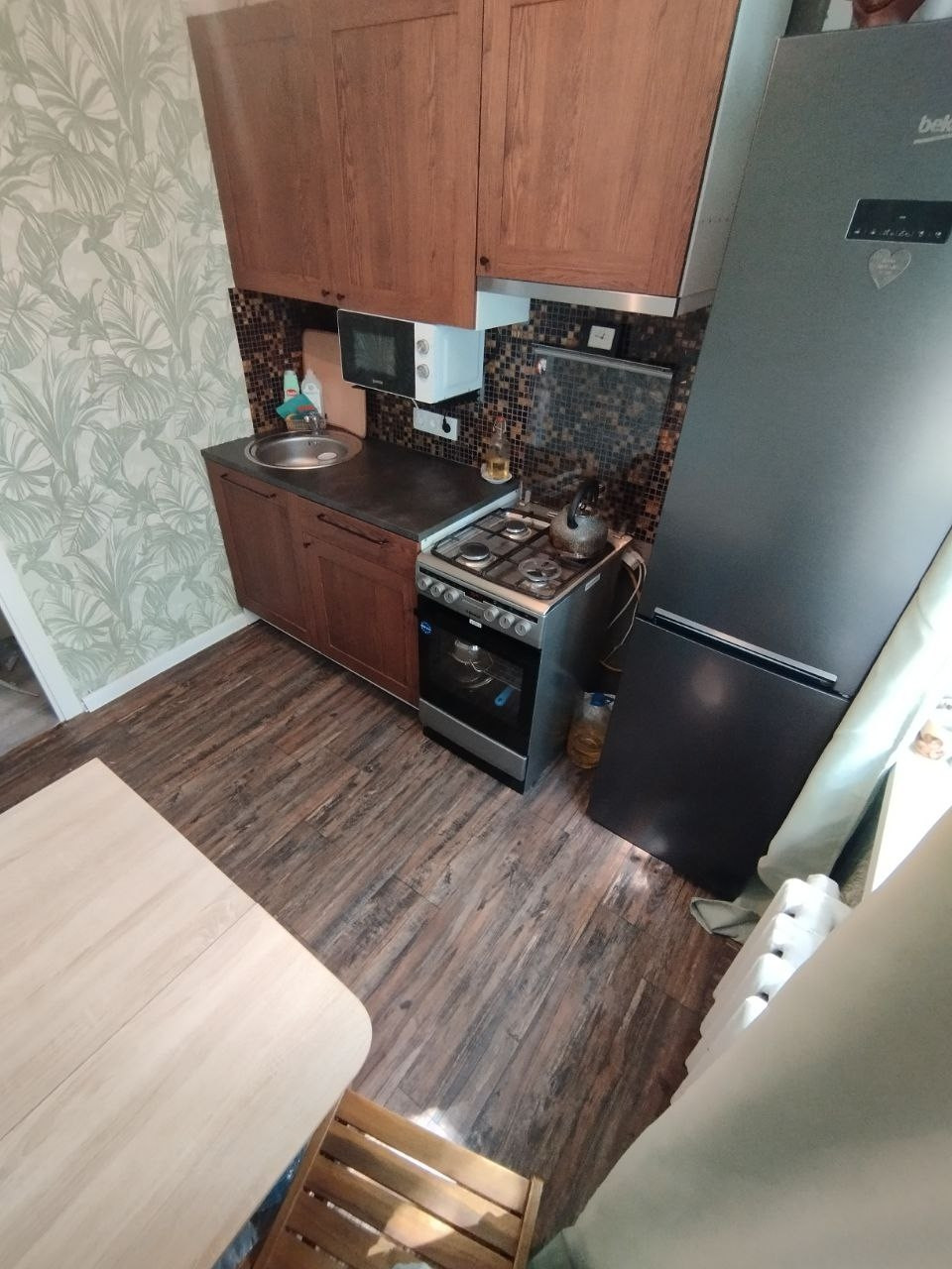 Квартира имеет функциональную планировку: раздельный санузел, две комнаты и лоджия, откуда открывается вид на двор с гимназией и детский сад. Кухня площадью 6.3 квадратных метра предоставит достаточно места для приготовления пищи и семейных ужинов. В квартире выполнен косметический ремонт, что позволит сразу заселиться без дополнительных вложений.
