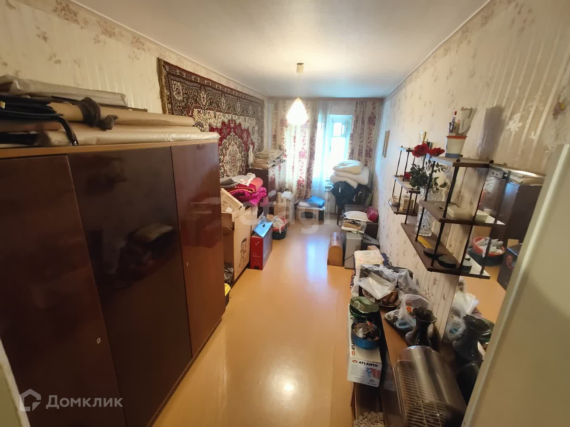 - Просторная комната с большими окнами.
