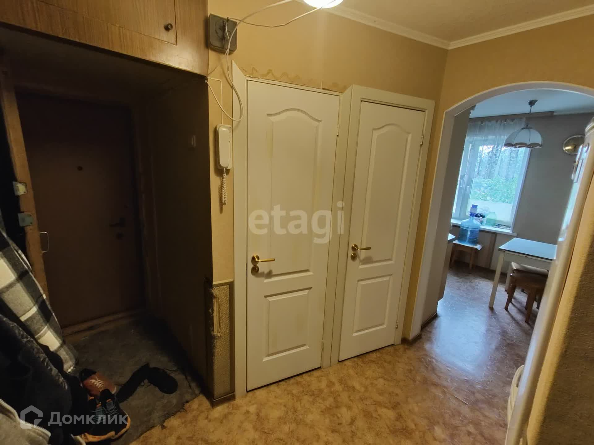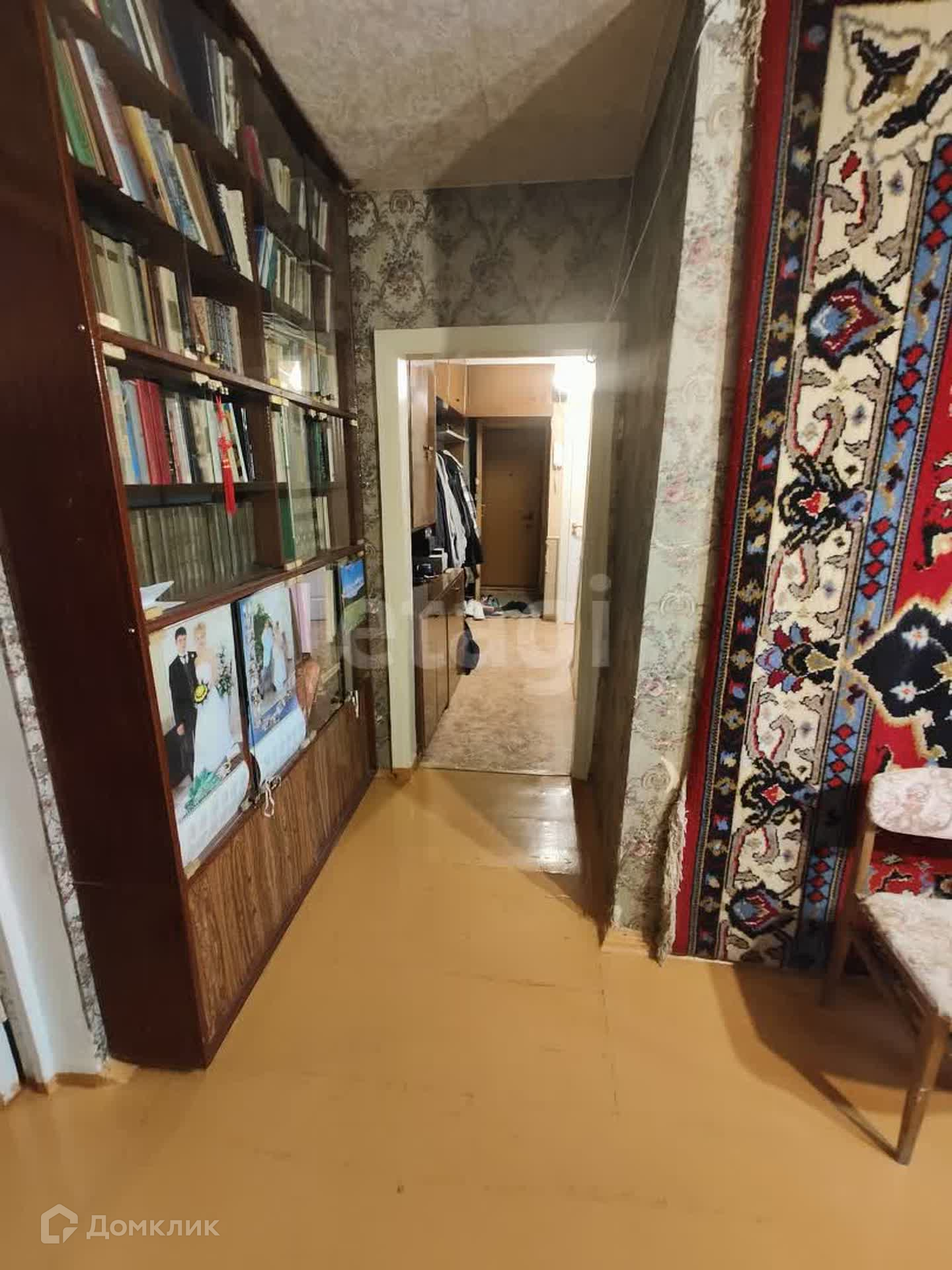 Квартира расположена на четвертом этаже панельного дома и имеет общую площадь 57,5н квадратных метров. Окна выходят на две стороны, обеспечивая хорошее естественное освещение.