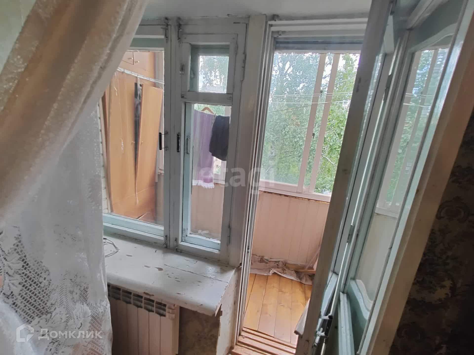 - Окно с видом на зеленый двор.