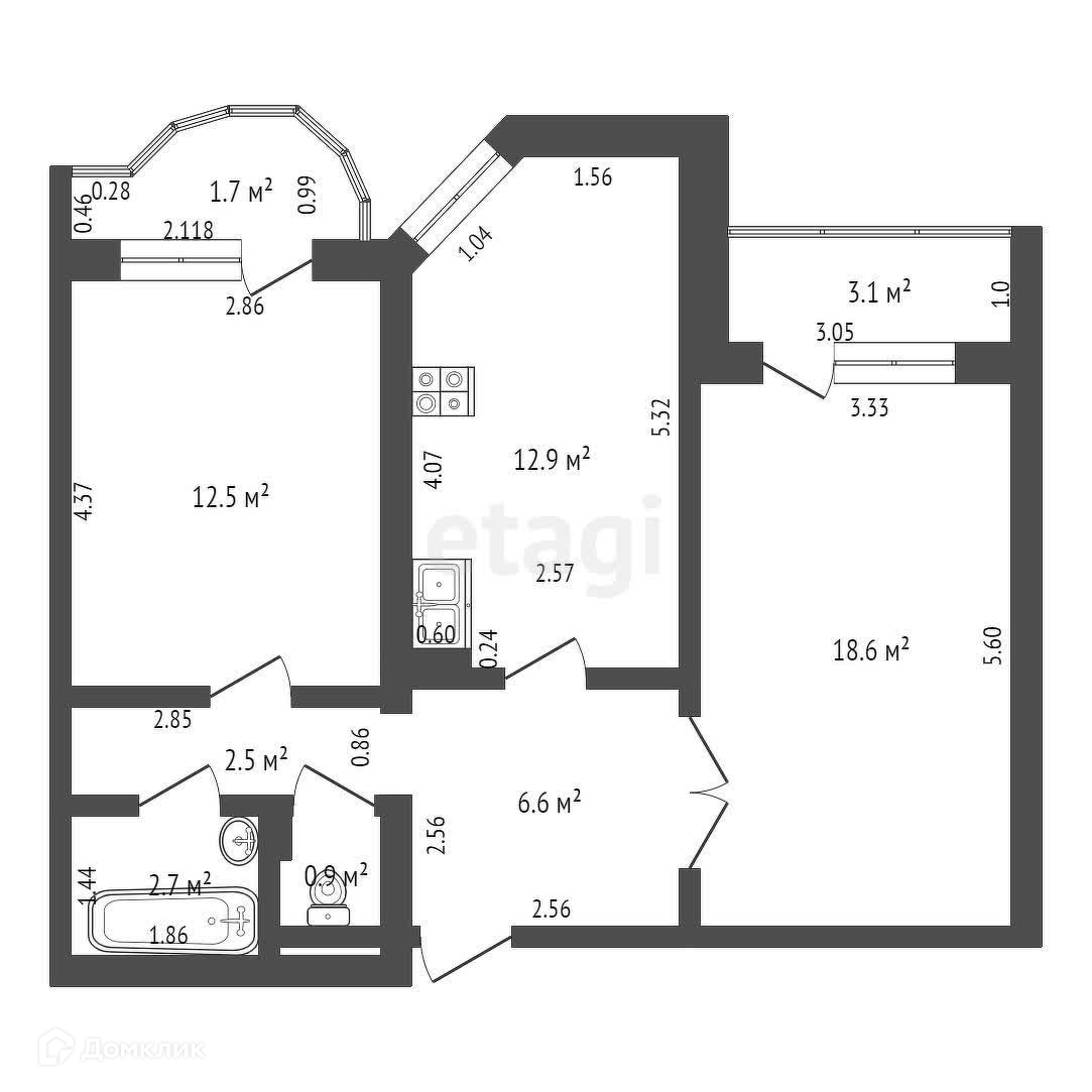 Общая площадь 57 м2