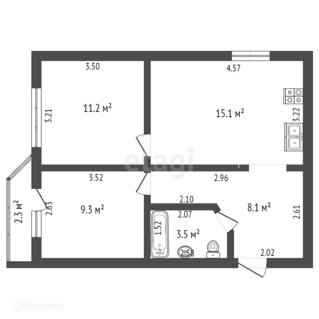 Общая площадь 42.3 м2