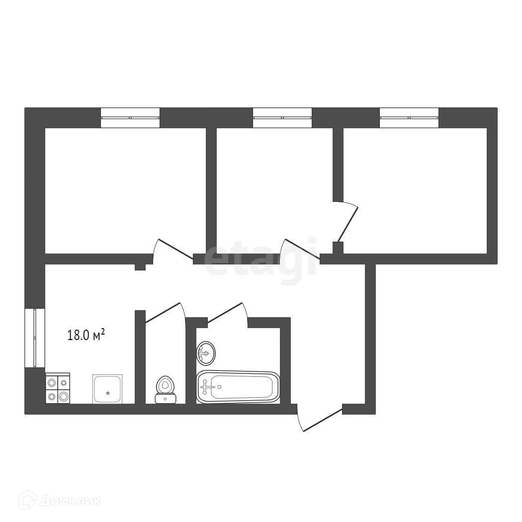 3-комнатная квартира, 63.5 м2, этаж 1 / 4, на продажу в Самаре, Торговый переулок, 28