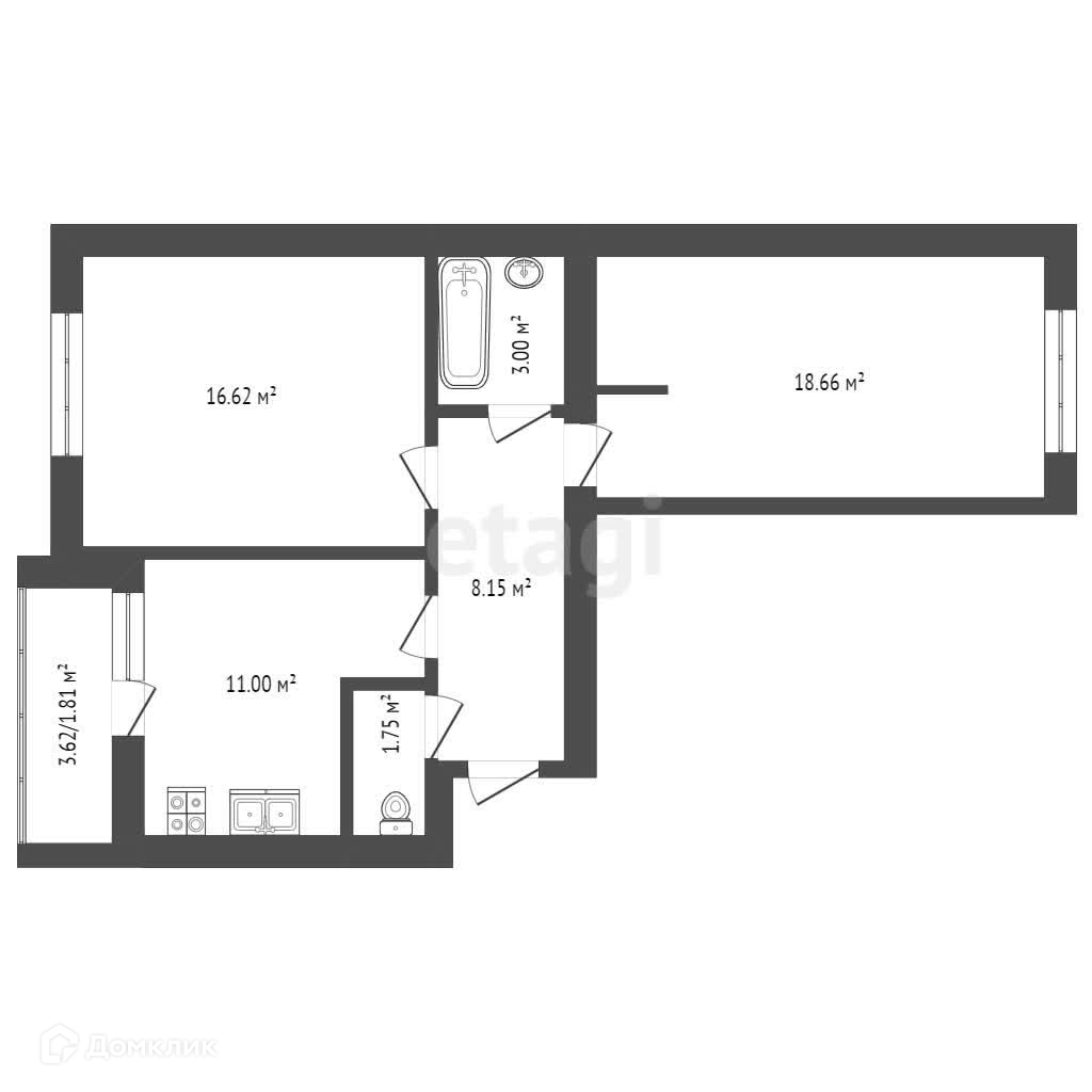 Общая площадь 63 м2