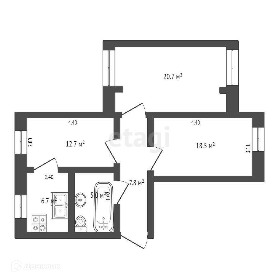 Общая площадь 71.4 м2