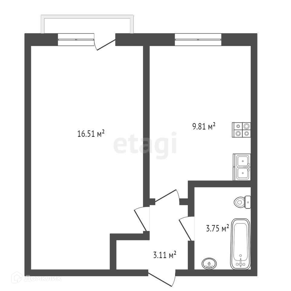 Общая площадь 33.2 м2