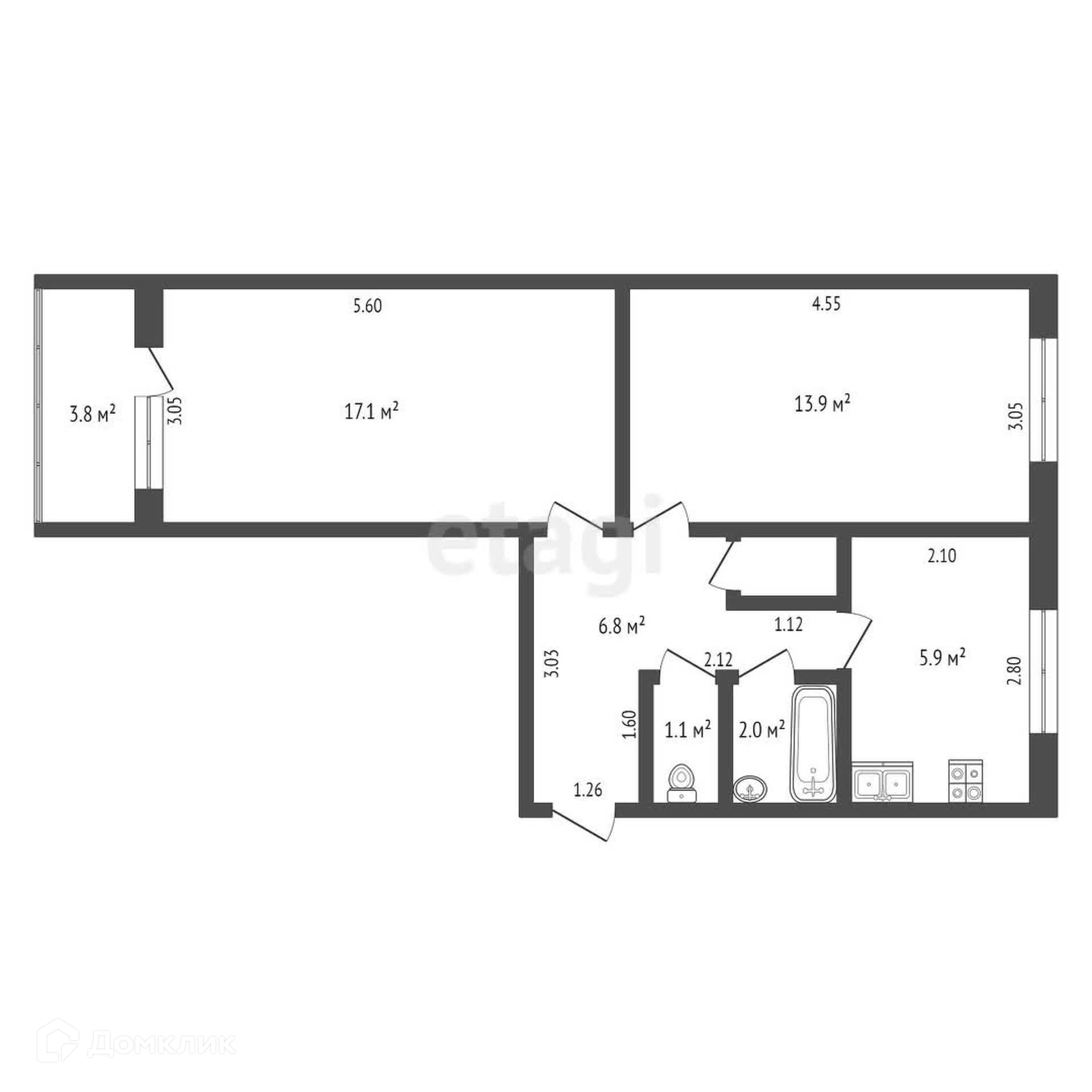 Общая площадь 46.8 м2