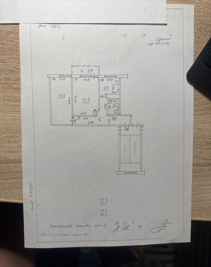 Общая площадь 45.3 м2