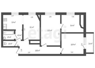 Общая площадь: 53.2 м2