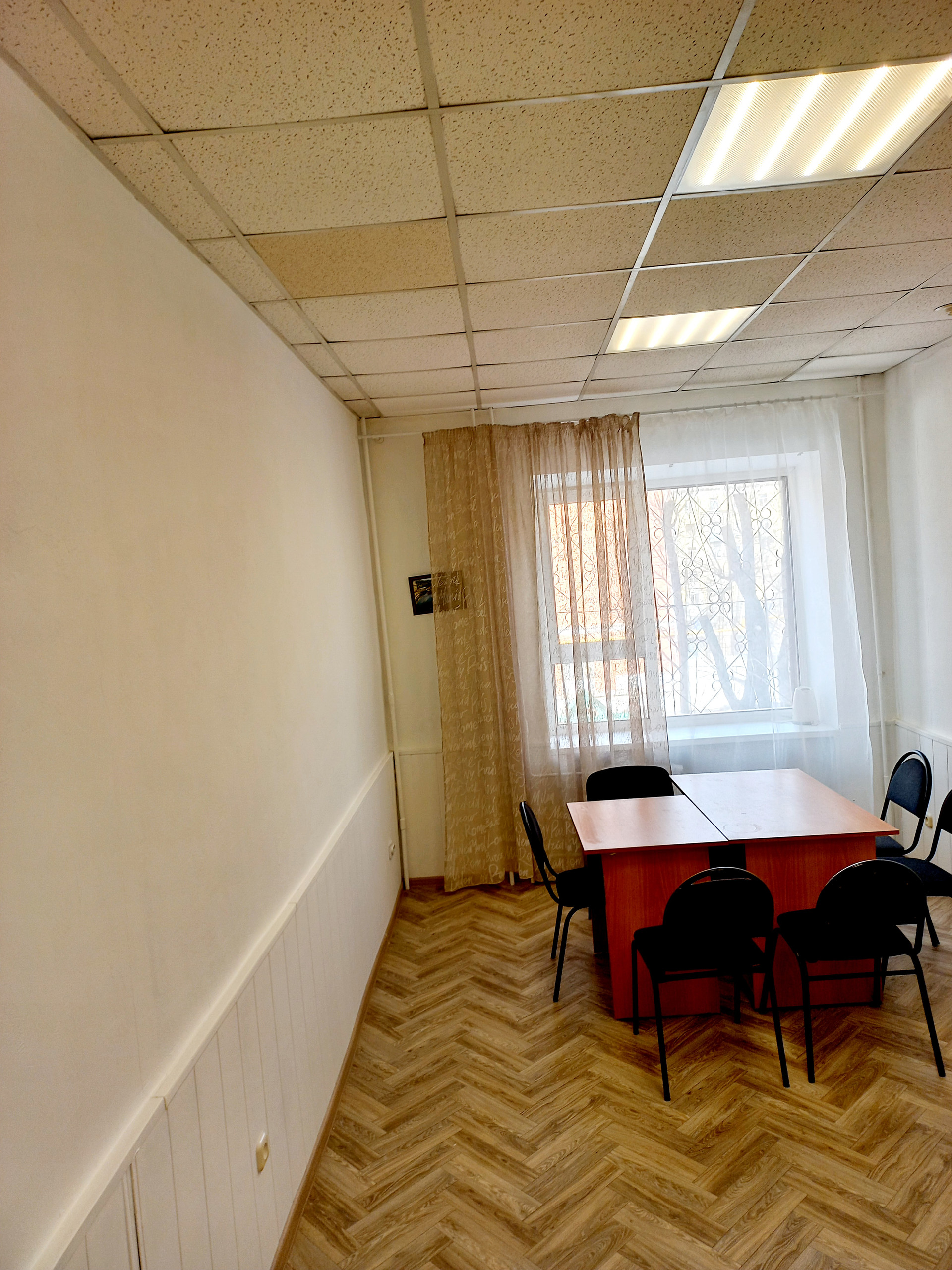 Офис в офисном центре. Высота потолка  более 3м. Удобная транспортная развязка: метро, Авиационный техникум, птичий рынок, сквер, магазины, маркеты, столовая, кафе, кофейни и все необходимое для работы. Можно как инвестиционное вложение рассмотреть. Можно завести мокрую точку. Соседи все спокойные. Окна во двор, Победу видно немного. Есть ощущение уединенности и концентрации на решение рабочих вопросов. Парковка всегда есть.