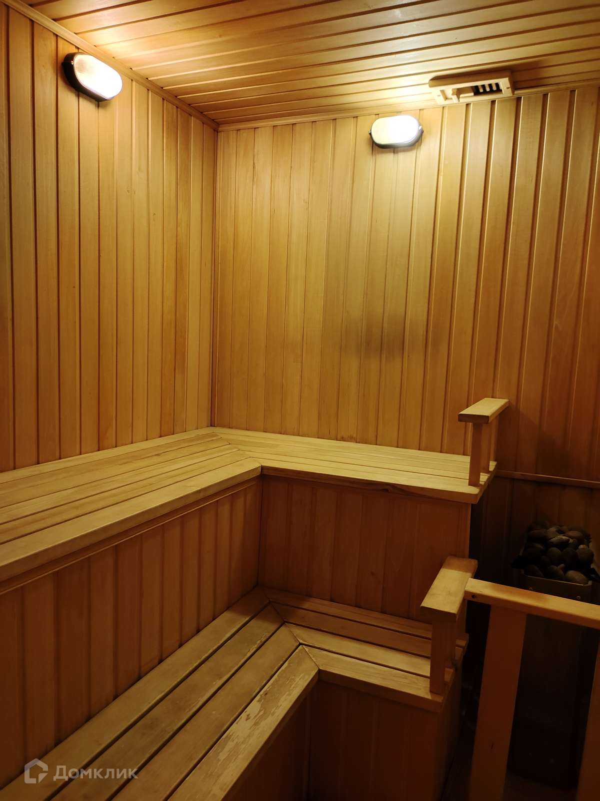 На первом этаже расположены гараж, сауна, котельная и спуск в подвал. Есть выход на внутренний дворик, земельный участок (две сотки) с зоной барбекю, летней кухней и садом. Также на прилегающей территории имеется 2 места под навесом для парковки а/м.