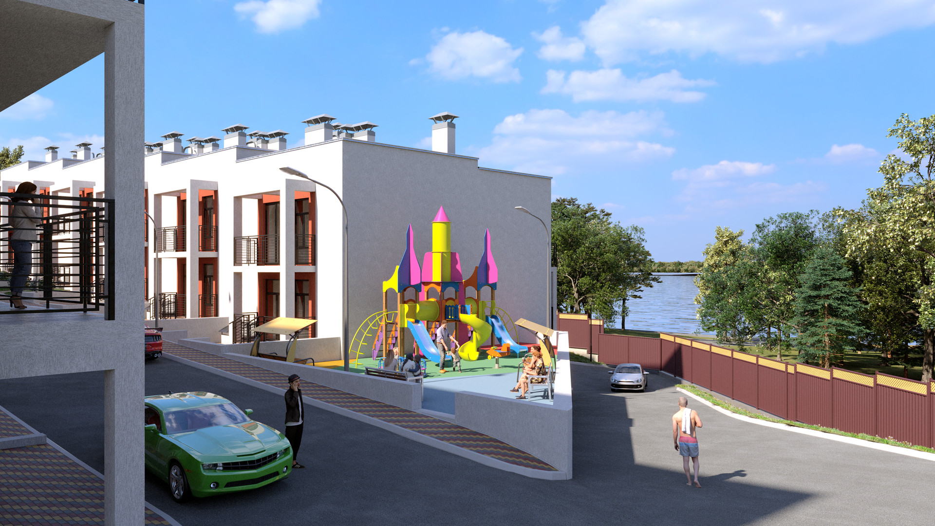 Таунхаусы имеют закрытую  территорию под видеонаблюдением. На территории есть безопасная детская площадка.