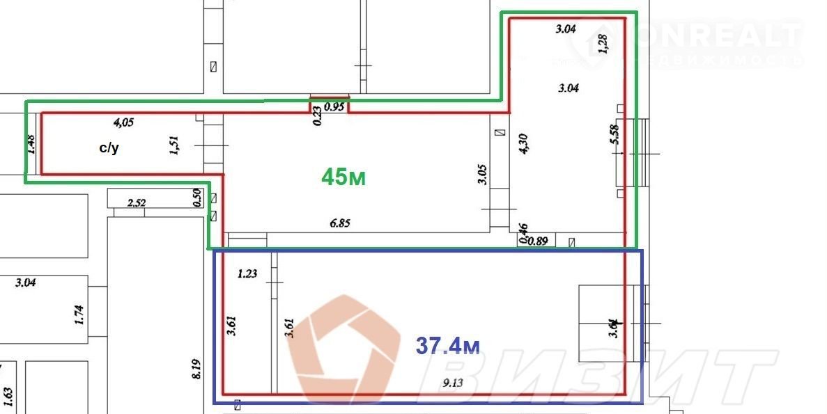 Отдельный вход. Планировка: 2 зала, подсобное помещение, санузел.