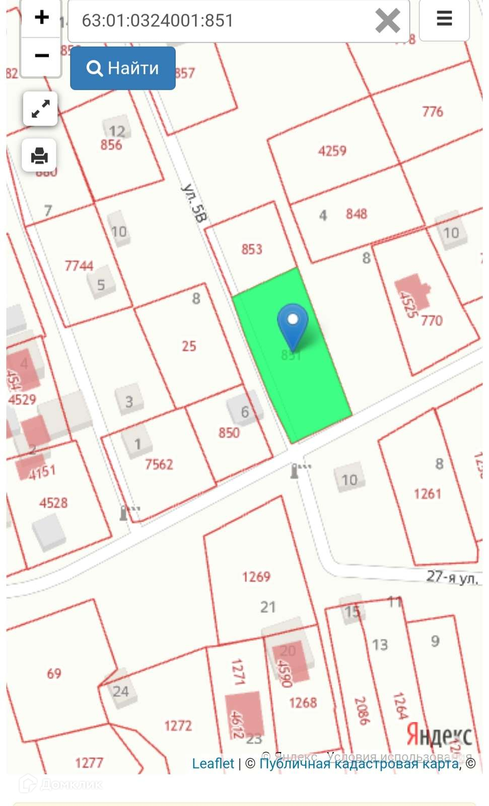 Кадастровый номер:63:01:0324001:851