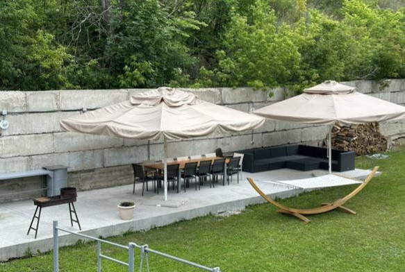 Последний ровный участок вдоль берега с хорошим подъездом к нему. Участок огорожен капитальным забором , есть капитальное кирпичное строение на границы участка, его можно использовать как гостевой дом во время строительства.