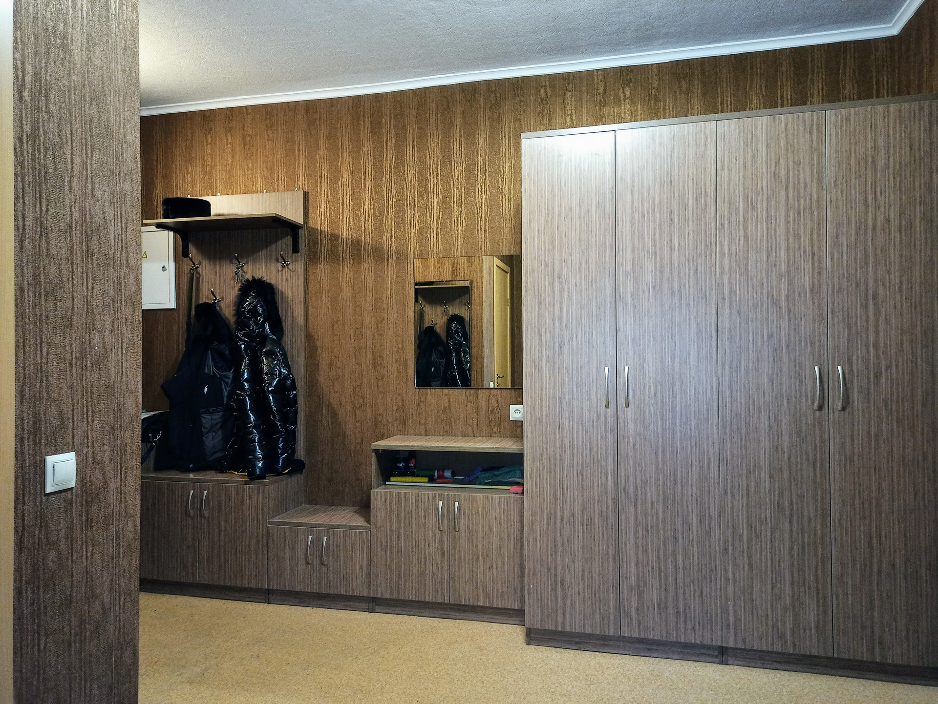Вся необходимая мебель и бытовая техника. На кухне кухонный гарнитур, 2-а холодильника, электро плита, в ванной - стиральная машинка, в коридоре шкафы для одежды и обуви, все есть.