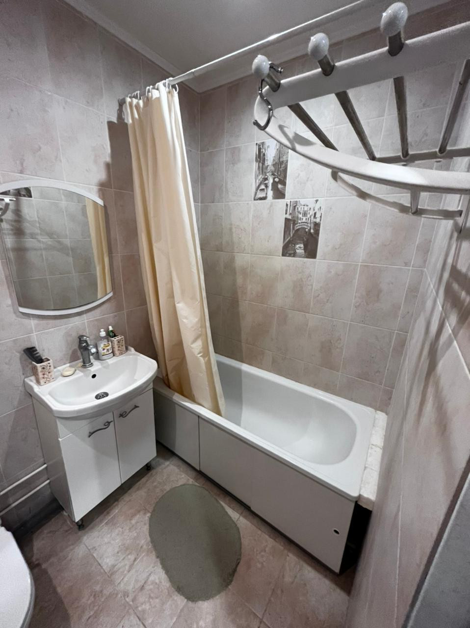Комфортный 4 этаж, ванная в кафеле, на кухне установлен кухонный гарнитур.