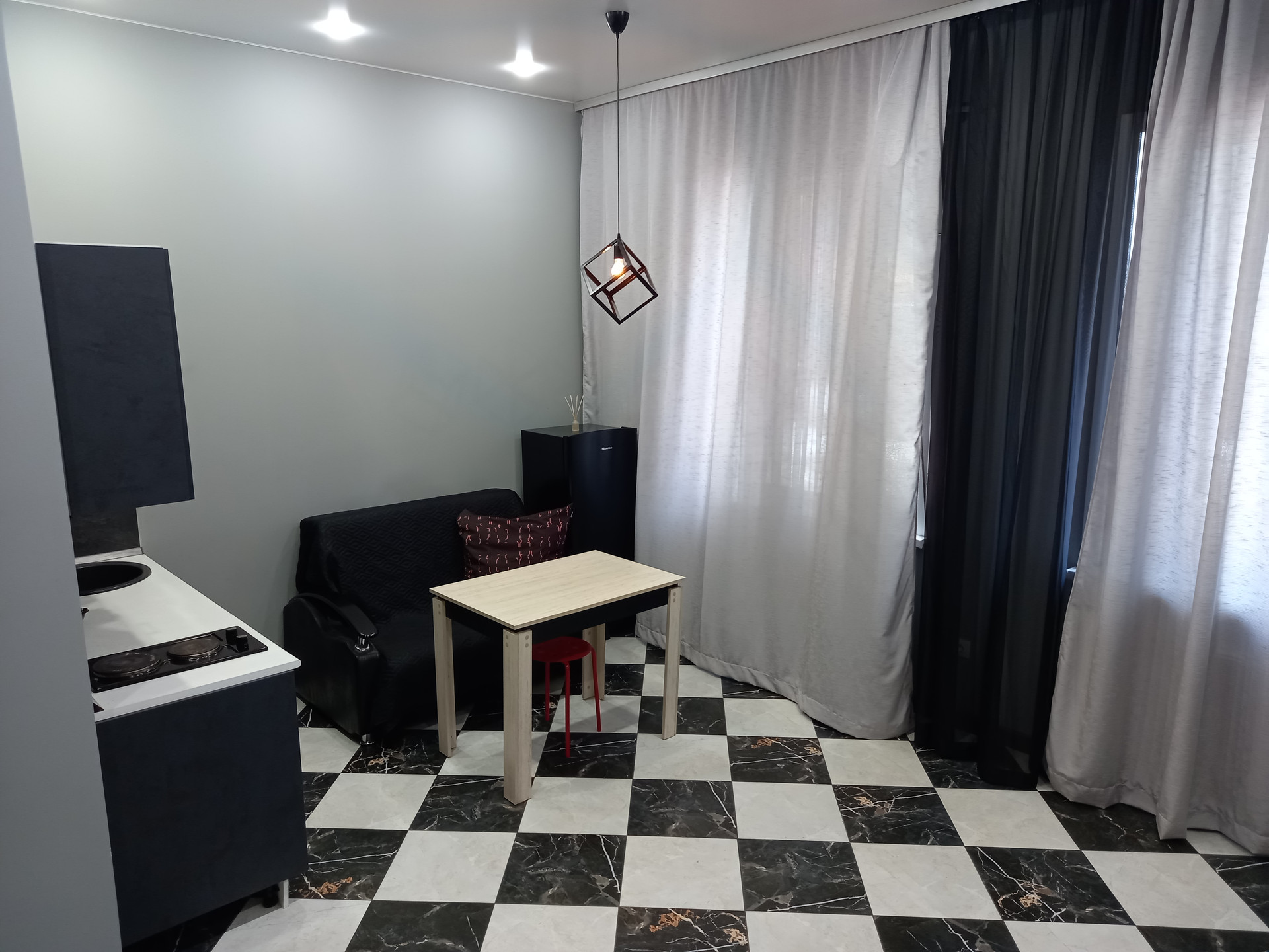 •    Сдам  квартиру студию на длительный период одному человеку или паре без детей и животных. Высота потолка 3,30. В доме круглосуточно работает консьерж.  В студии есть все для комфортного проживания: два дивана, холодильник,  кухонный гарнитур,стиральная  машина, стол, водонагреватель (на период летней профилактики) и т.п.  Удачная транспортная развязка. Рядом: Торговый центр Космопорт, Центральный Автовокзал, Аэрокосмический университет,  аптеки, школа, детский сад.