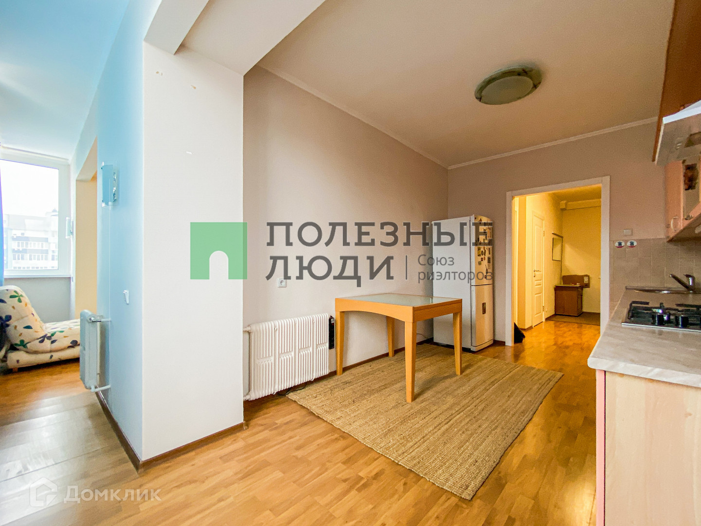 В кухонной зоне новая газовая варочная поверхность, холодильник, эл.чайник, уже куплены кухонные стулья;