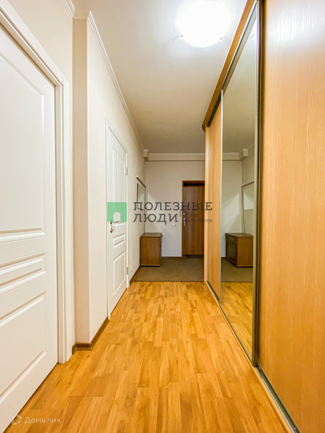 В коридоре вместительный шкаф купе, зеркало, комод для обуви;